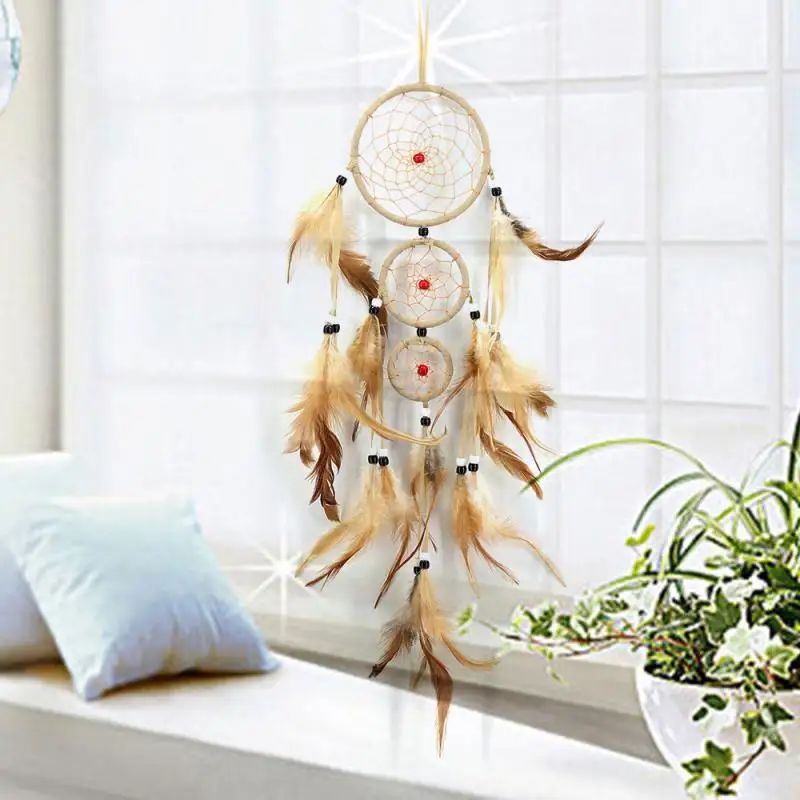 Поделки из перьев Ловец снов коричневые колокольчики ручной работы индийская сеть Ловца снов для настенного висячего автомобиля украшение дома кулон подарок