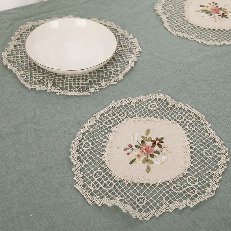Роскошный кружевной Хлопковый вязаный крючком обеденный столовый стол из льняной ткани Coaster кухонный набор изоляционных подушечек для еды рождественские круглые салфетки