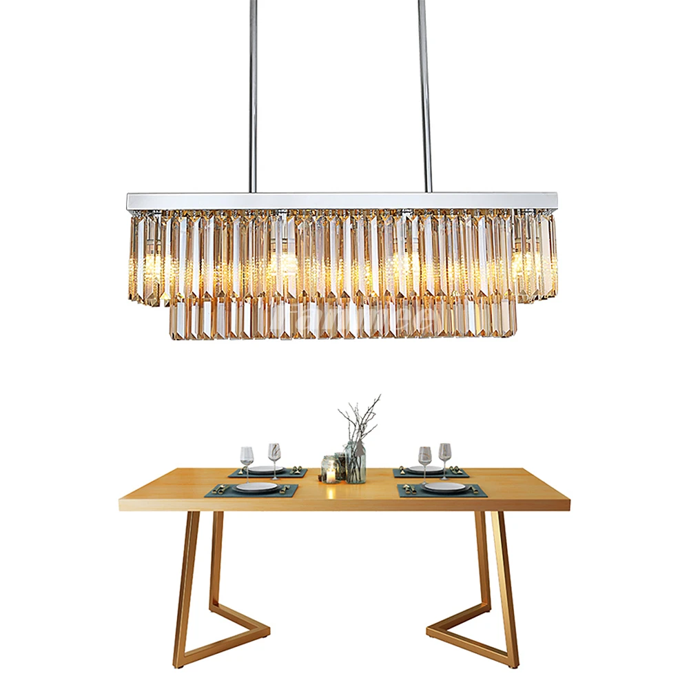 Odeon Modern Crystal Chandelier Light LED Minimalist Rectangular Chrome Hanging Lamp Art Deco Kitchen Island Dining Table Home