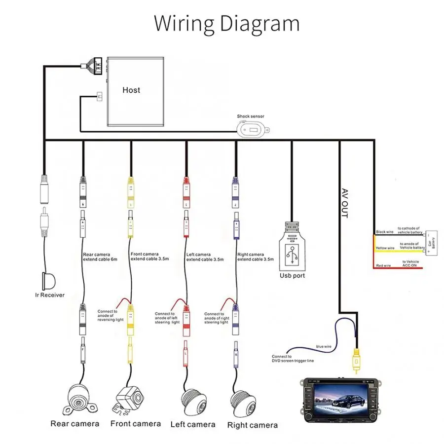 720P HD Car DVR Camera 360° Surround View Camera System Driving Recorder