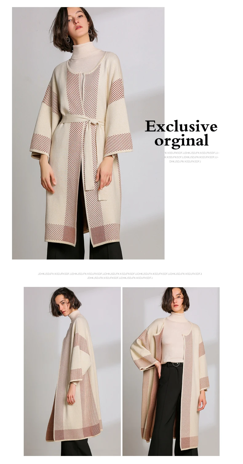 Harajuku длинный кардиган женский оверсайз зима осень кашемировый свитер с поясом с длинным рукавом бежевый Свободный вязаный свитер женский