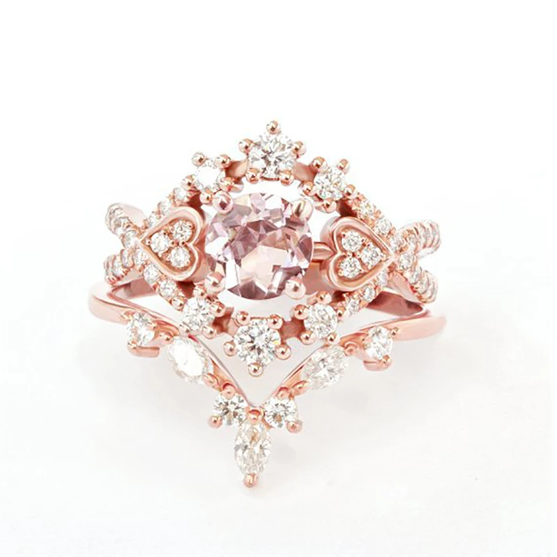 Женское Обручальное Кольцо LISM, розовое золото, циркониевое кольцо с цветком, 3 шт./компл., ювелирное изделие в подарок, Прямая поставка