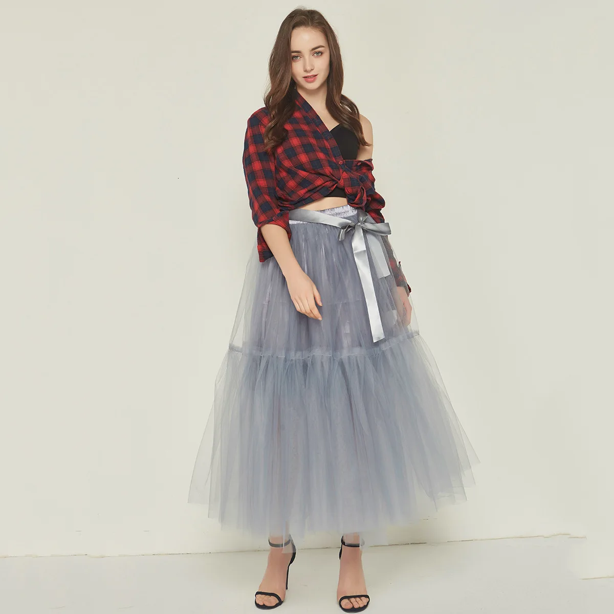 Женская длинная повседневная юбка с высокой талией винтажная клетчатая
