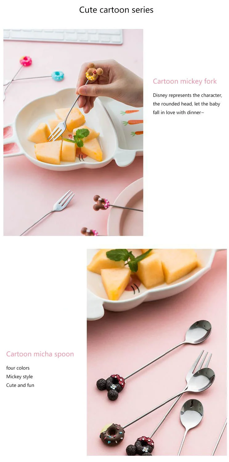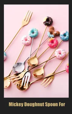4 шт. нержавеющая сталь Микки пончик Ложка Вилка шикарный кофе Десерт Мороженое чайные ложки вилки милые перемешивания