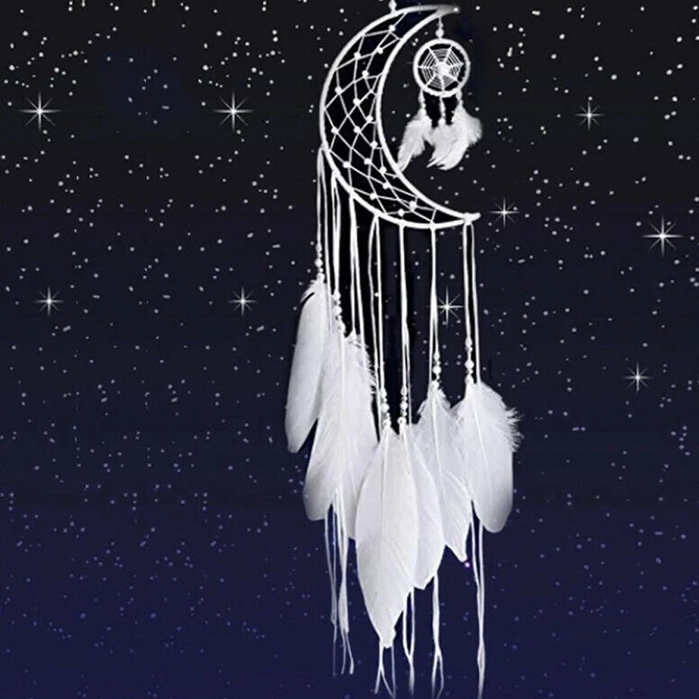 Ветряные куранты, Свадебный домашний декор, белая луна, полумесяц, Ловец снов, перо, подвесное украшение для дома7 долларов США