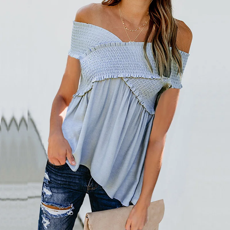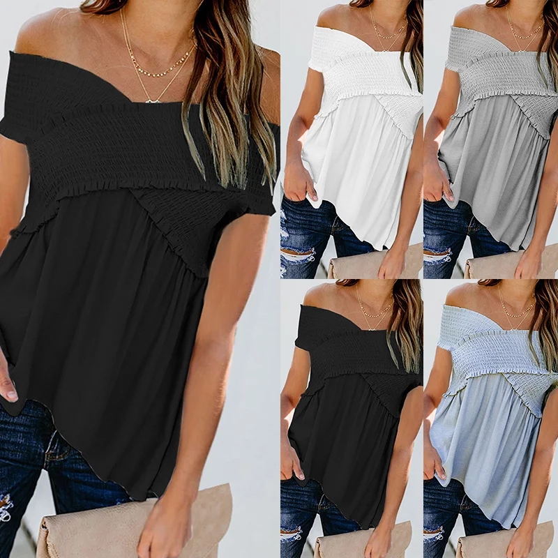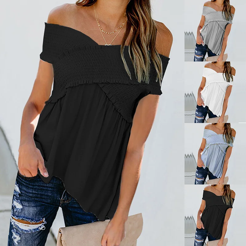 * Описание товара:Женская одежда, летняя мода, тонкий вырез лодочкой, эластичные Топы с коротким рукавом, футболка, плюс размер