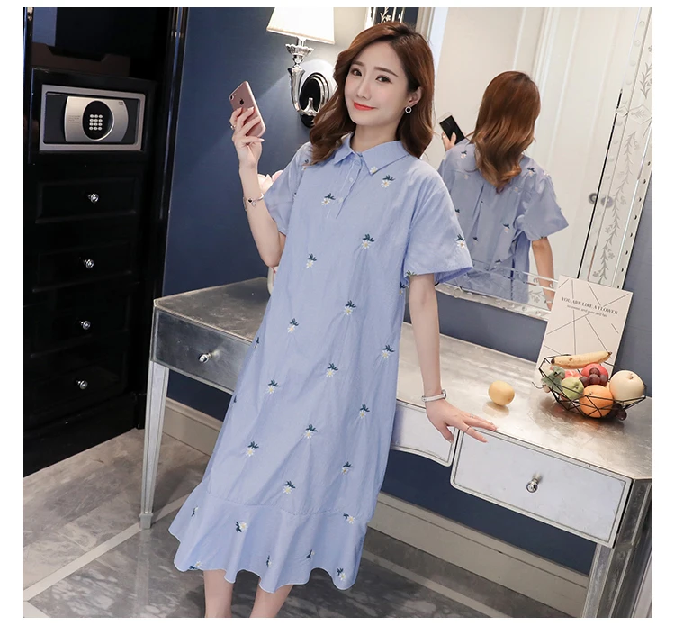 Embroidered Dresses Maternity Pregnancy Clothes For Pregnant Women Summer Short Sleeve Pregnancy Dress Maternity Clothing