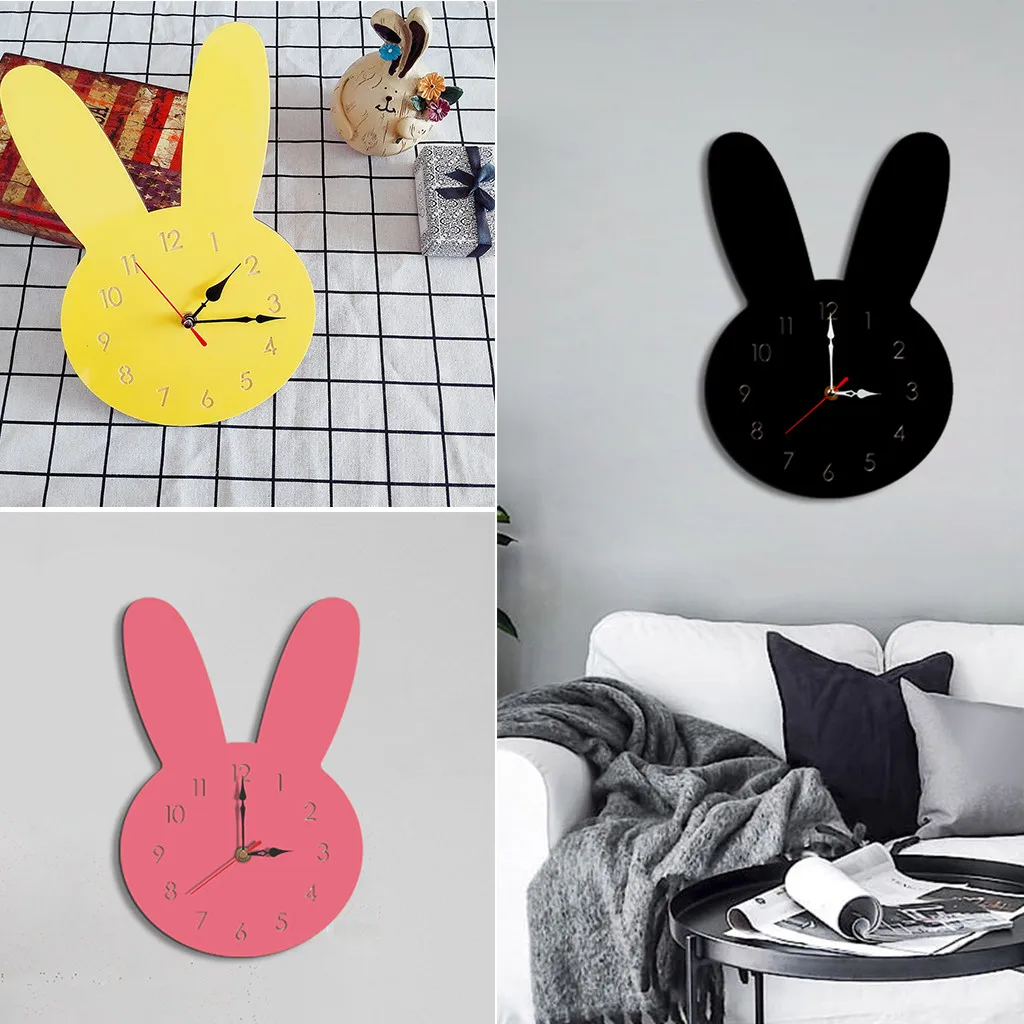 Настенные часы с кроликом в скандинавском стиле, бесшумные деревянные часы для дома, гостиной