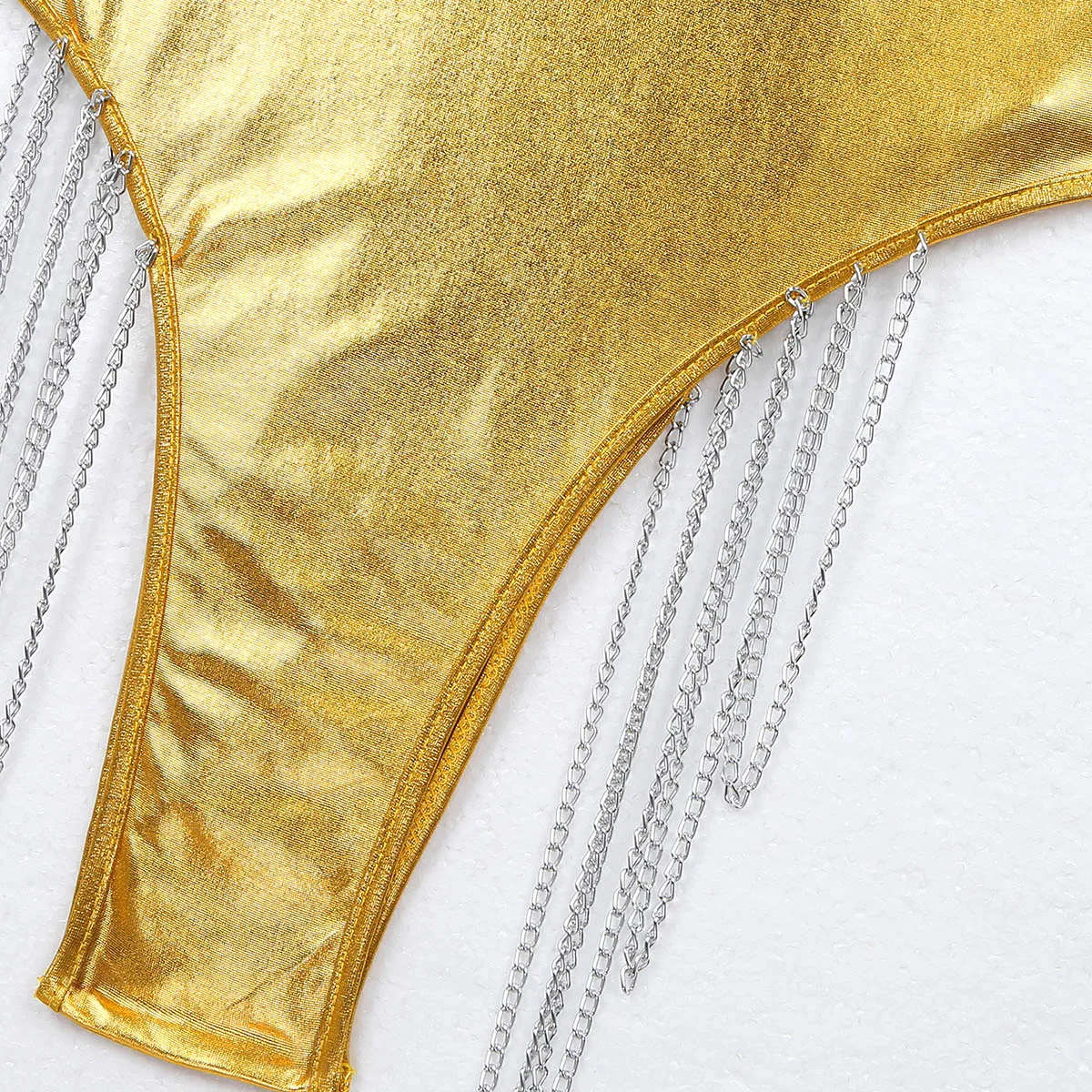 Женское блестящее металлическое нижнее белье, блестящий внешний вид.