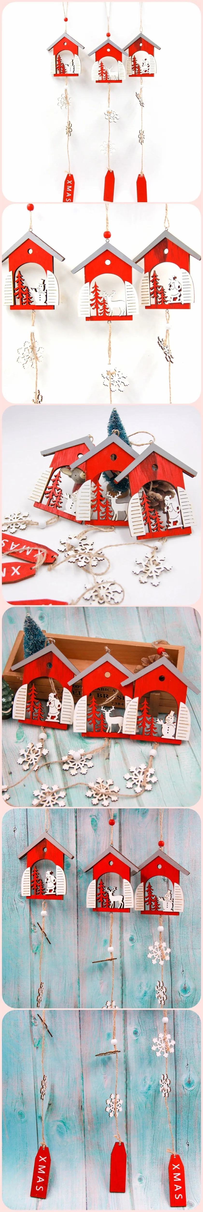 1PCS Christmas Santa Claus/Snowman Red Wooden Pendants Ornaments House Shape Xmas Tree Ornament For Christmas Party Decoration
