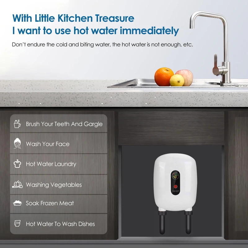 [Быстрое нагревание]: Быстрое нагревание занимает всего 3 секунды, не дожидаясь. Водонагреватели без резервуара обеспечивают непрерывный поток горячей воды, нагревая только необходимую воду. Управление одной кнопкой, простота в использовании. [большой ЖК-дисплей]: водонагреватель без резервуара для кухни оснащен светодиодный дисплеем, который может четко видеть температуру. Он может легко обеспечить горячую воду при температуре 20 ° C до 50 ° C. Подходит для использования на кухне. [обеспечивает безопасность]: интегрированное устройство защиты от утечки. Несколько мер безопасности, таких как защита от брызг и брызг IPX4, защита от сухого ожога, защита от изоляции воды и электричества и защита изоляции корпуса. [Постоянная температура]: даже если скорость потока варьируется сверху вниз, она может обеспечить постоянную температуру выхода. Он может быть установлен на кухне, гостиной, ванной или любом другом желаемом месте. [Энергосбережение]: экономия воды в ожидании попадания горячей воды в кран, уменьшение потери тепла, экономия энергии и затрат, отсутствие загрязнения, отсутствие отходов газа. Мощность: 3500 ВтТемпература воды: 20-50 °CДавление воды: 0,05-0.6MPa Посылка включает:1 * безрезервуарный мгновенный нагреватель горячей водыСмотрите так же другие товары:
