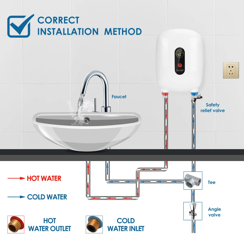 3500 Вт мини мгновенный Электрический водонагреватель без резервуара, Мгновенный водонагреватель с защитой от перегрева, светодиодный дисплей, защита от утечки, для душа в ванной комнате