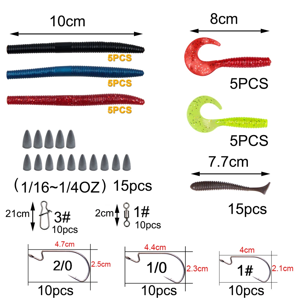 Количество: 107 шт Цвет: мульти Цвет Особенности: Бионический дизайн, Реалистичный, более привлекательный для рыб Различные червяк приманка для рыбалки набор, больше выбора Идеальный подарок для вашего друга. Примечание: измерения могут иметь некоторые ошибки, пожалуйста, не возражайте.