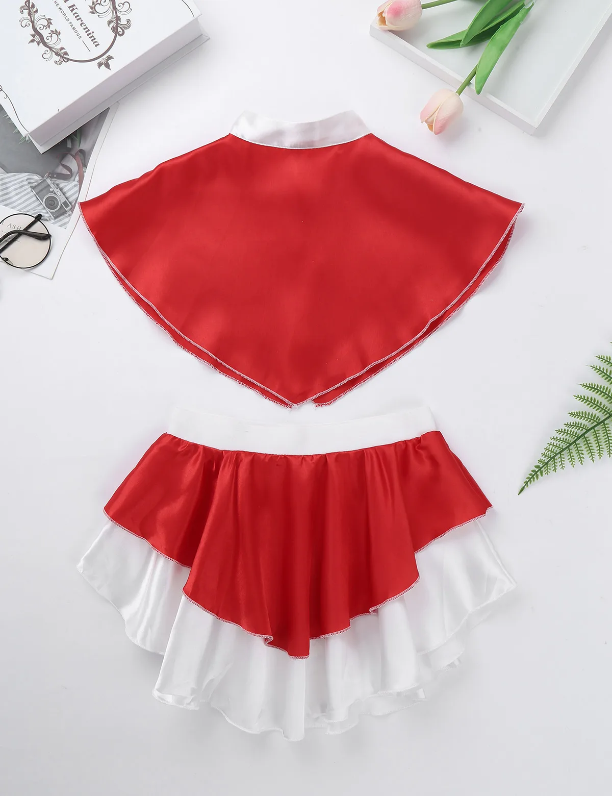 2 слоя атласной юбки, красный топ, белый низ. С эластичным поясом легко надевать и удобная посадка.