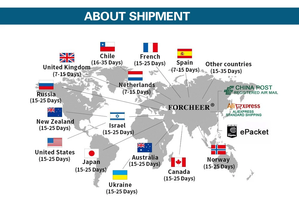 8. Зарегистрированная Авиапочта Китая используется для доставки ваших товаров в США, Европе и других частях мира. Доставка обычно занимает от 15 до 45 рабочих дней. Если общая сумма покупки превышает $180, EMS или DHL будут нести ответственность за доставку ваших продуктов вам. Если у вас есть любимая доставка, пожалуйста, свяжитесь с нами и сообщите нам.
