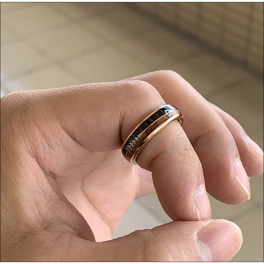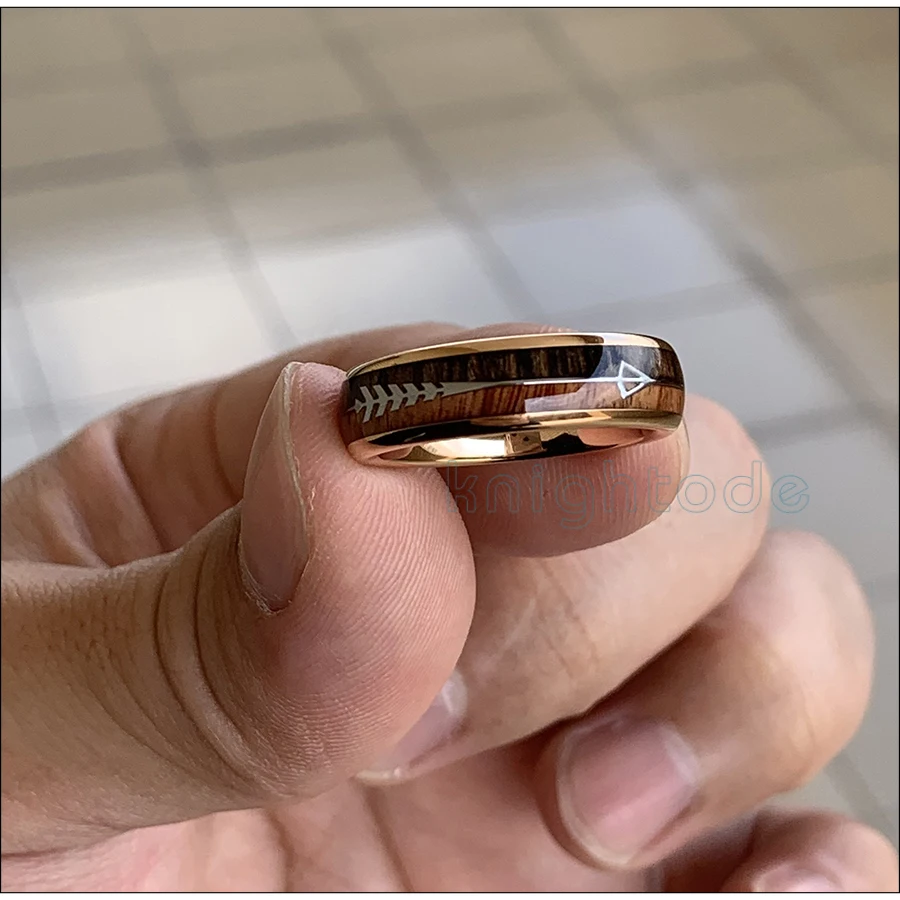 6 мм розовое золото вольфрамовое кольцо Стрела/дерево инкрустация купольная лента