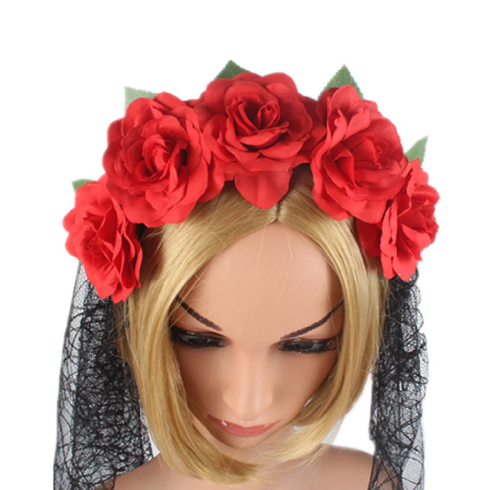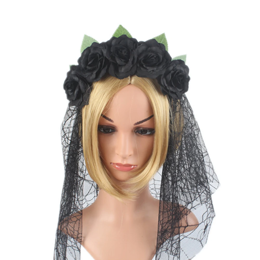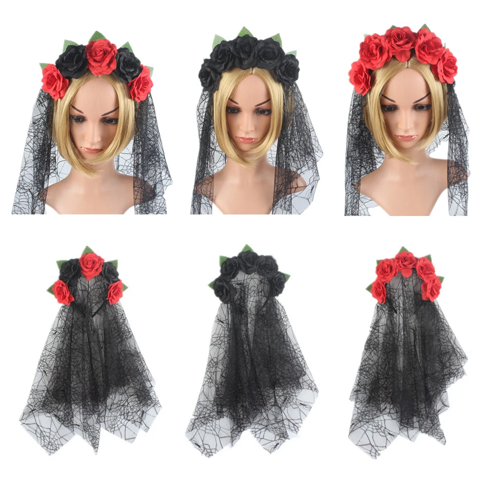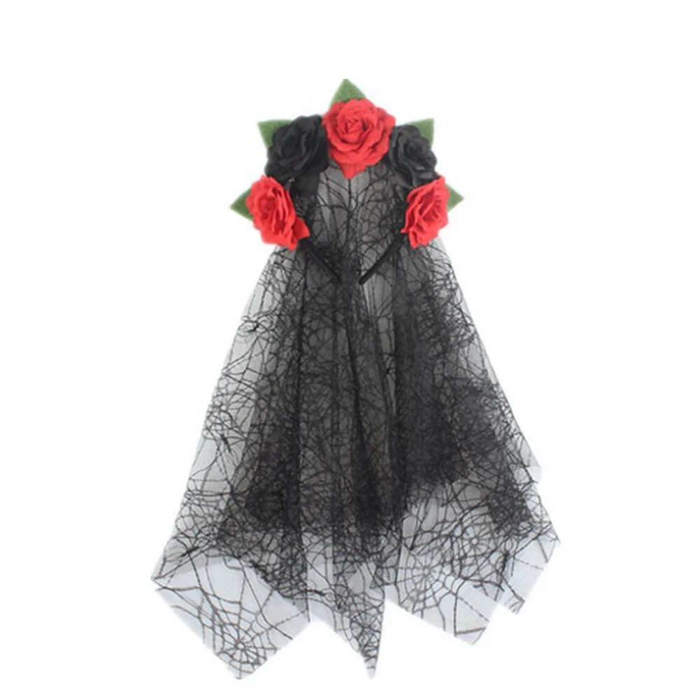 -Прекрасный головной убор с изысканной розой, кружевом и украшением в виде черепа.