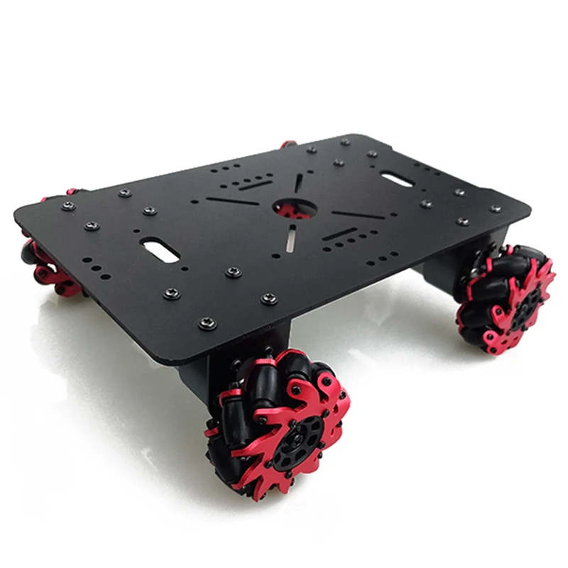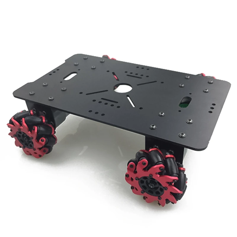 Рама автомобиля изготовлена из 3 мм материалов из алюминиевого сплава, платформа колеса mecanum может нести 6-10 кг. С цельнометаллической коробкой передач, 4 шт. 12 В 330 об/мин DC замедляющие двигатели могут сделать шасси автомобиля стабильной работой.