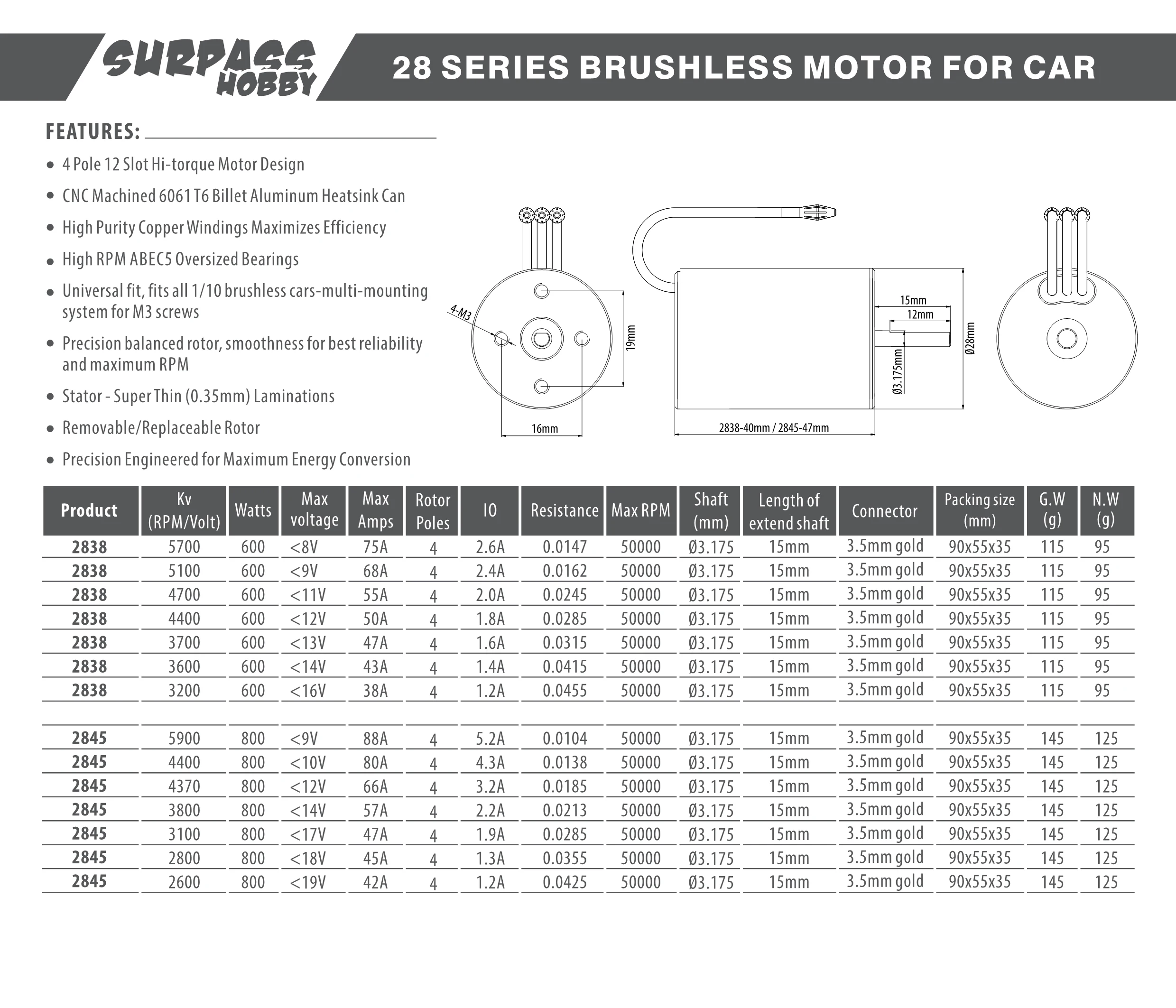 1 * Водонепроницаемый 2845 бесщеточный мотор