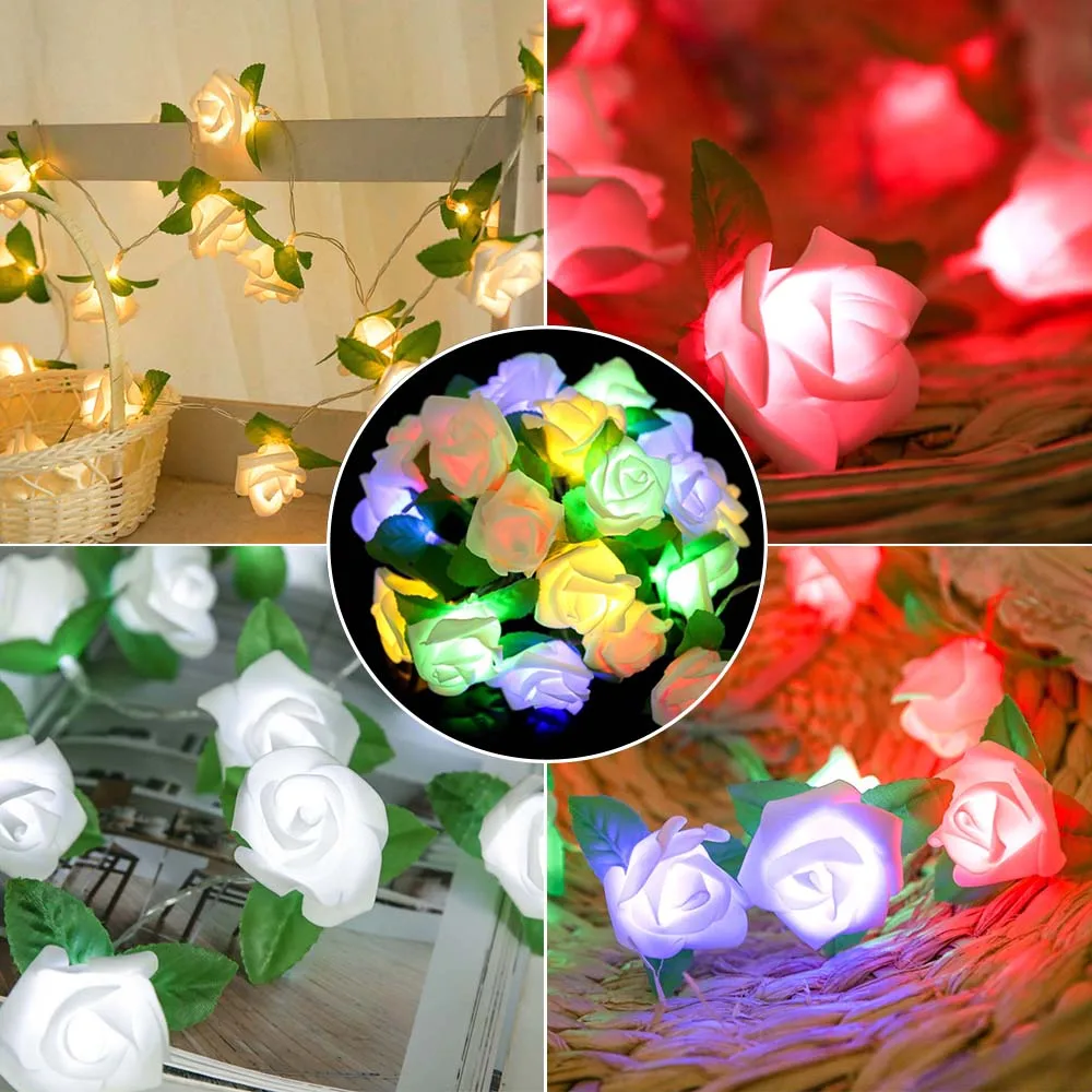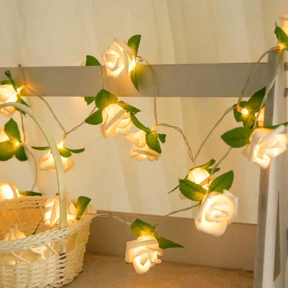 Гирлянда для мероприятий и вечеринок, 20 светодиодов, роза с зелеными листьями, декоративная роза на свадьбу, день рождения, День святого Валентина