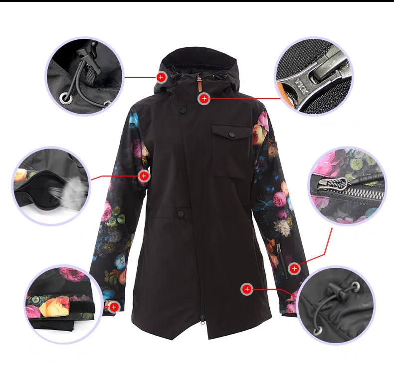 2021 GSOU зимний женский лыжный костюм с капюшоном, куртка для сноуборда, ветрозащитная водонепроницаемая верхняя спортивная одежда, лыжный утепленный костюм