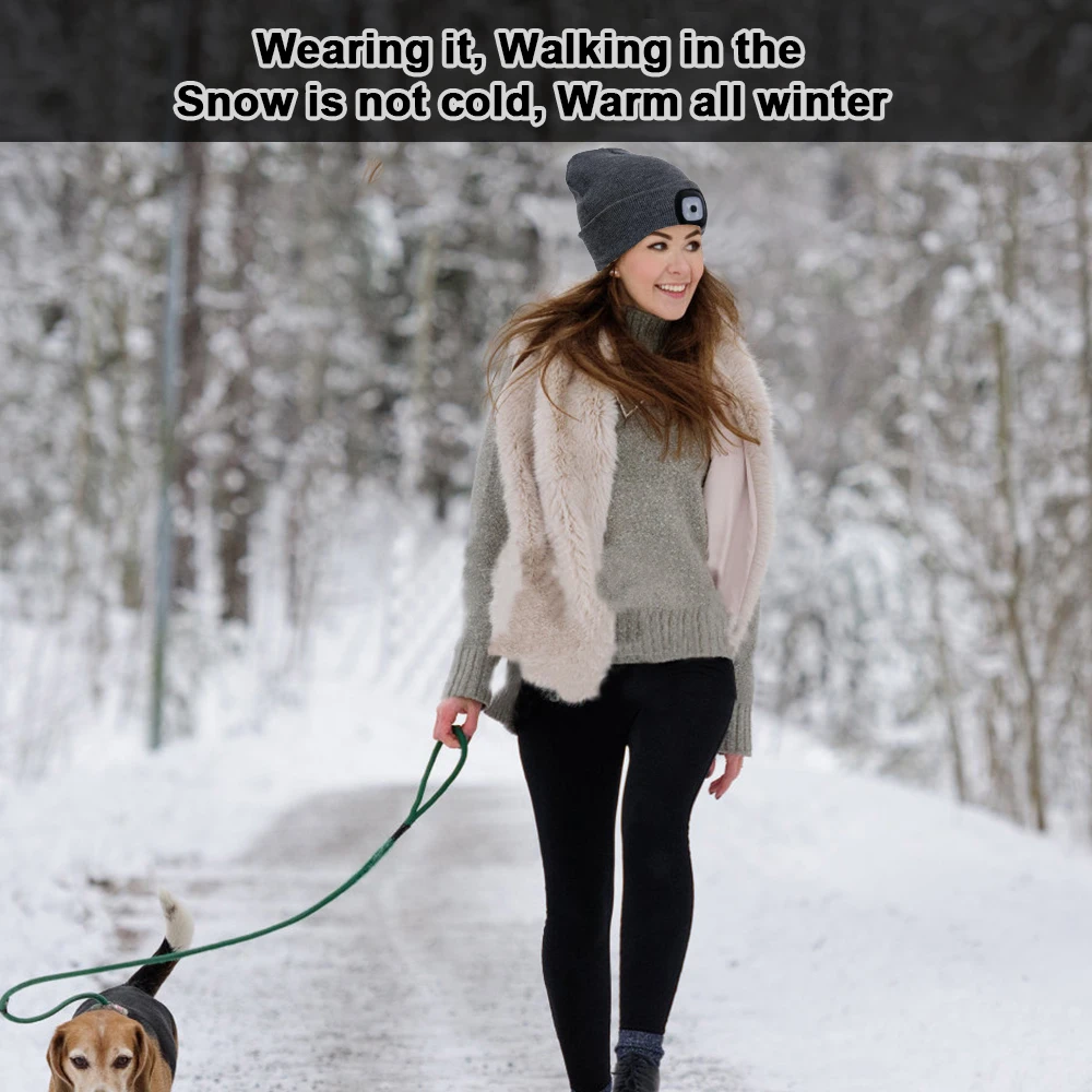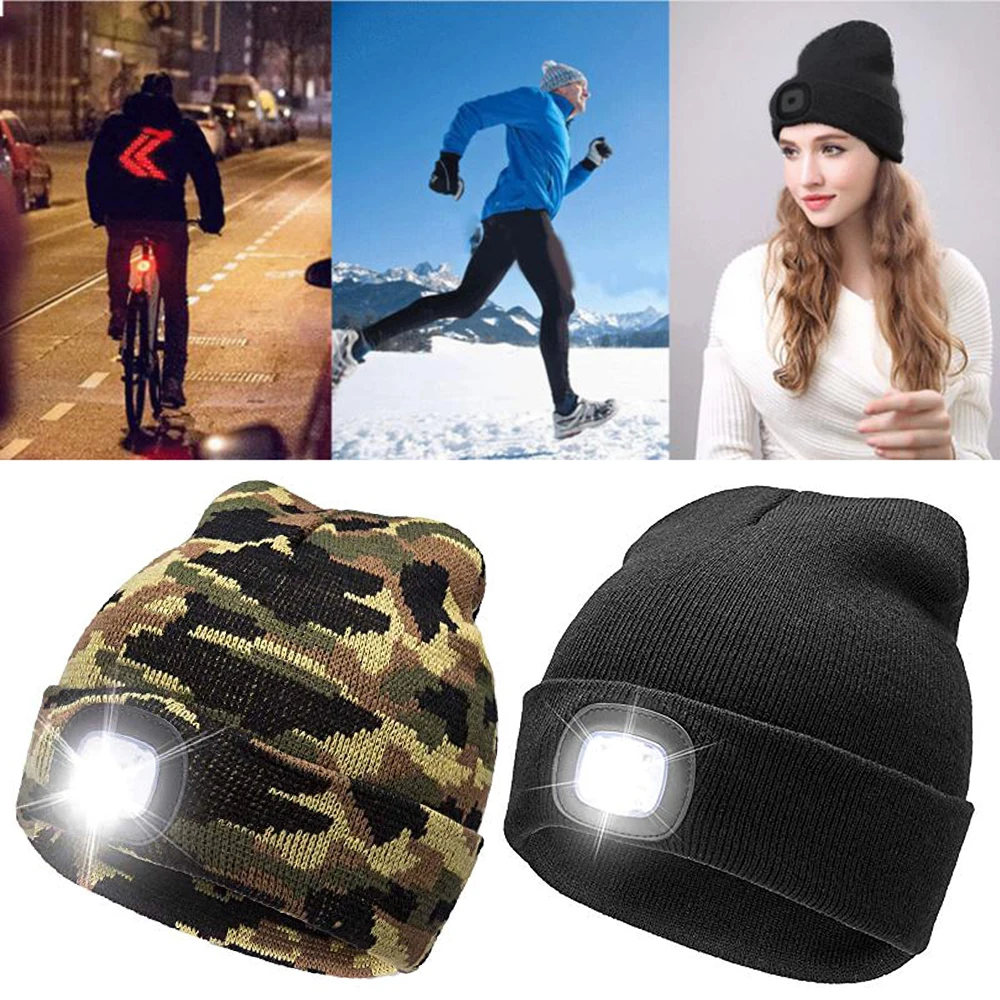 Теплые рождественские подарки, Шапка-бини со светодиодной подсветкой в стиле хип-хоп для мужчин и женщин, вязаная шапка для охоты, кемпинга, бега, домашняя шапка без батареи