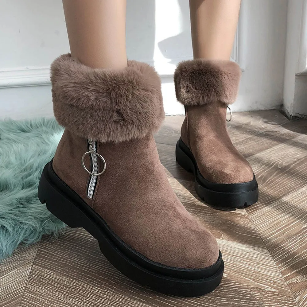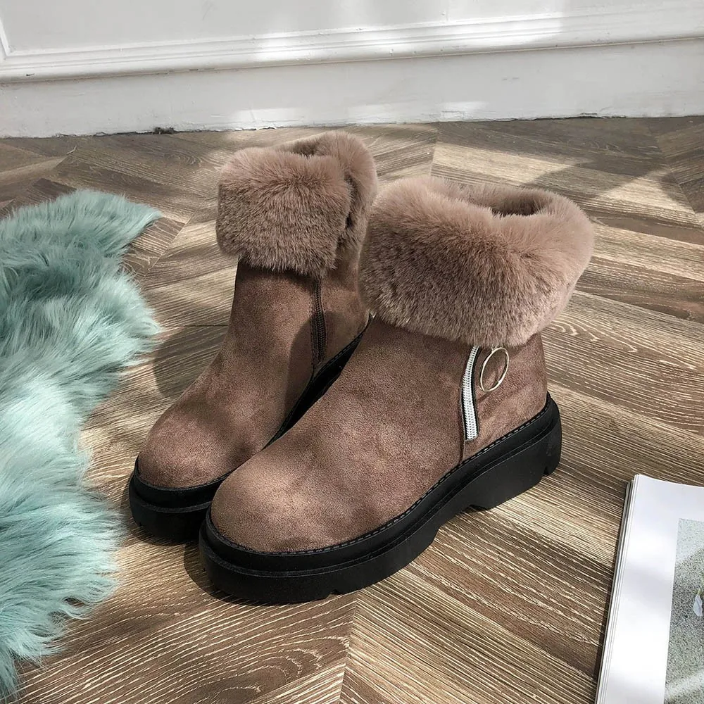 Женские модные зимние теплые ботинки martin из флока на молнии с мехом повседневная обувь с круглым носком