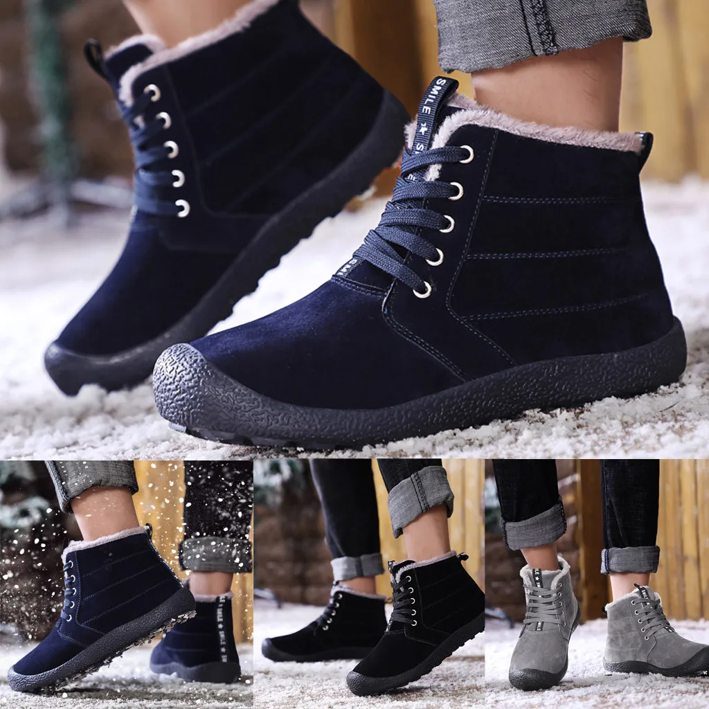 Мужская мода плюс бархат теплые уличные анти-Лыжные короткие ботинки хлопчатобумажная обувь