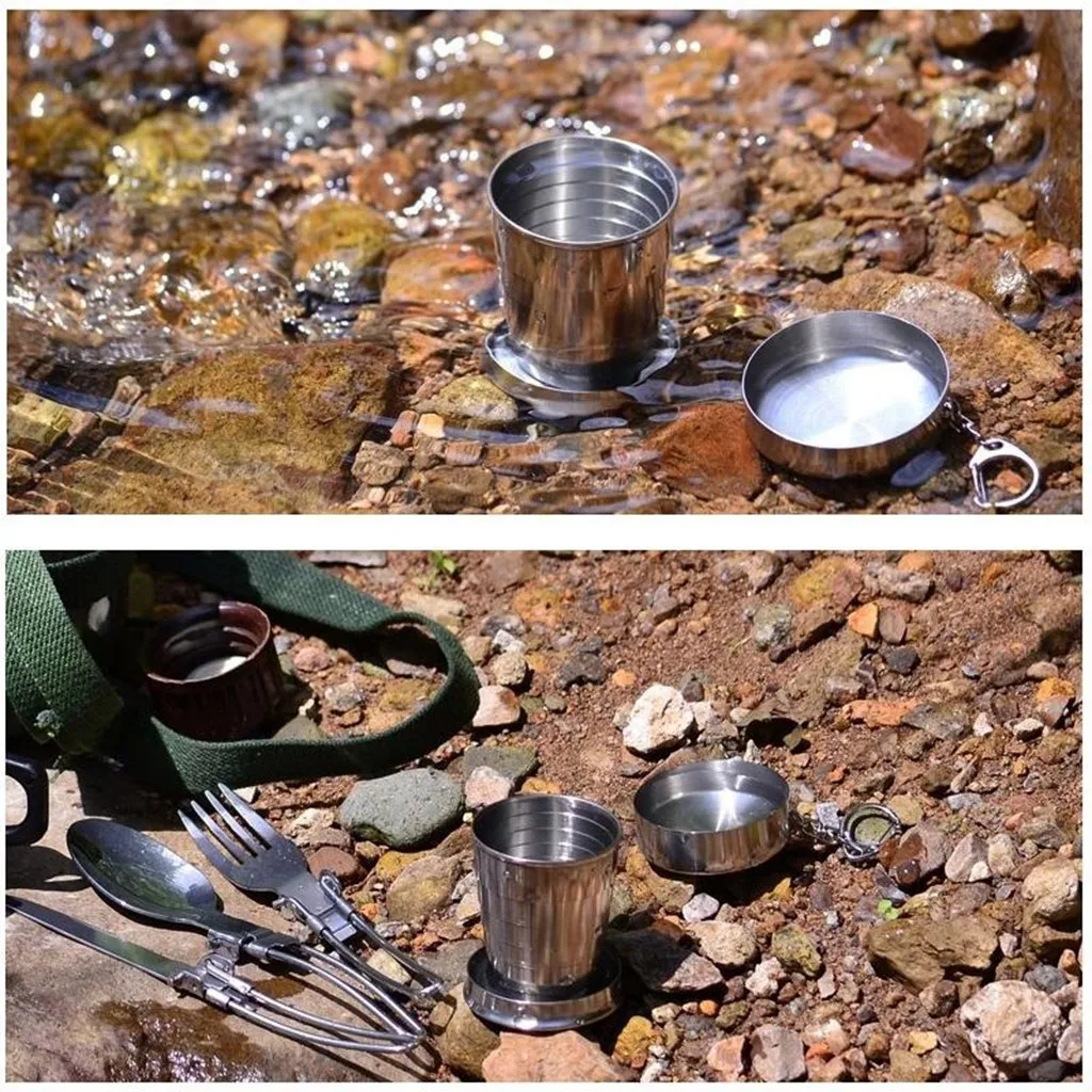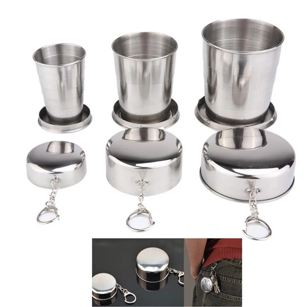 Складная чашка из нержавеющей стали для кемпинга с брелком для путешествий на открытом воздухе, походная портативная чашка