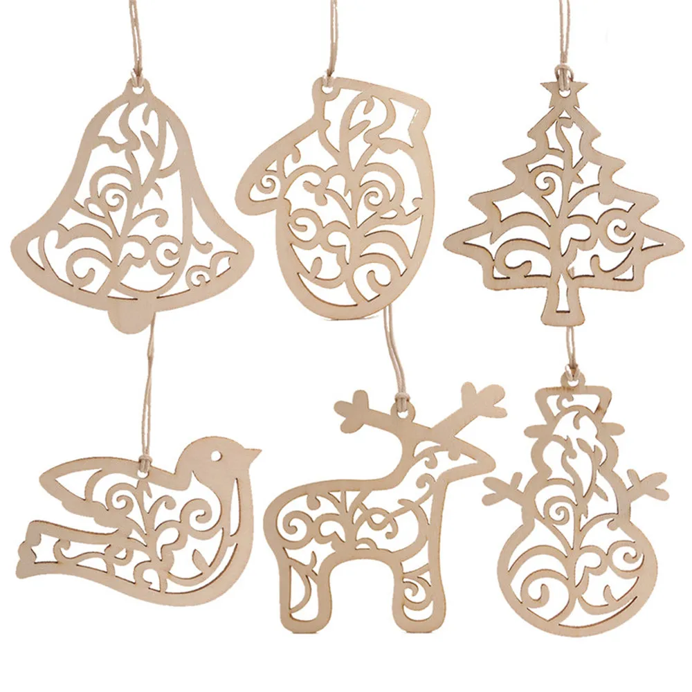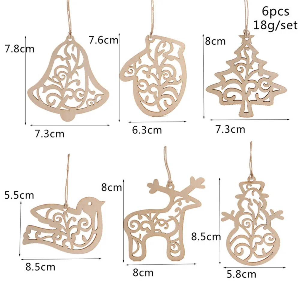 6 шт. новые украшения для рождественской елки подвесные украшения для рождественской елки деревянный кулон