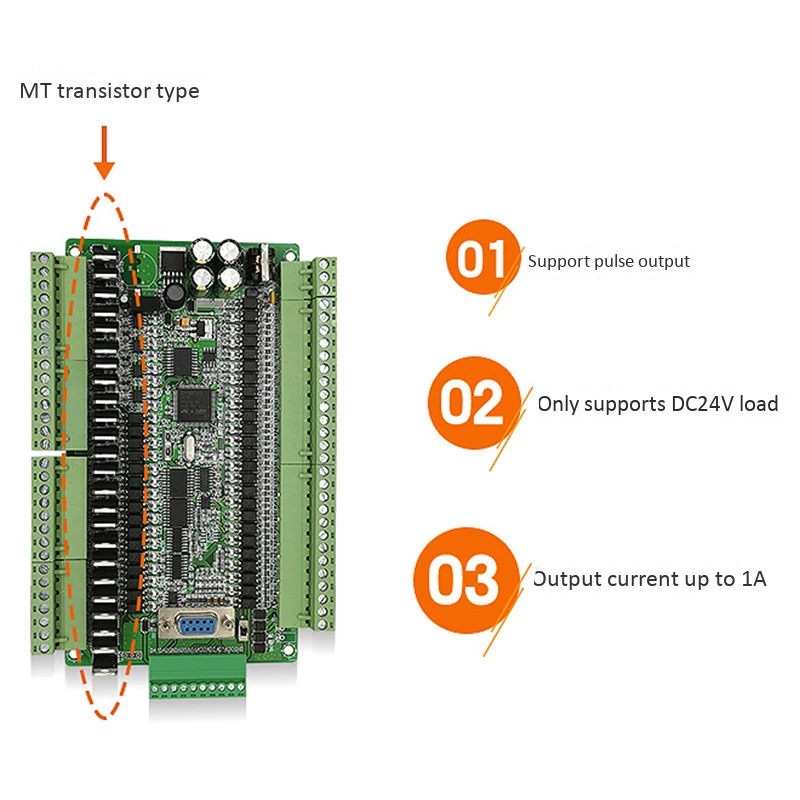 X input elements DC24, X0-X27 input,Low level X0-5 is a high-speed count input port (Default is 12K, 100KHZ optional) Y output elements Y0-Y27 for optimal relay or transistor output, relay output current 5A.
