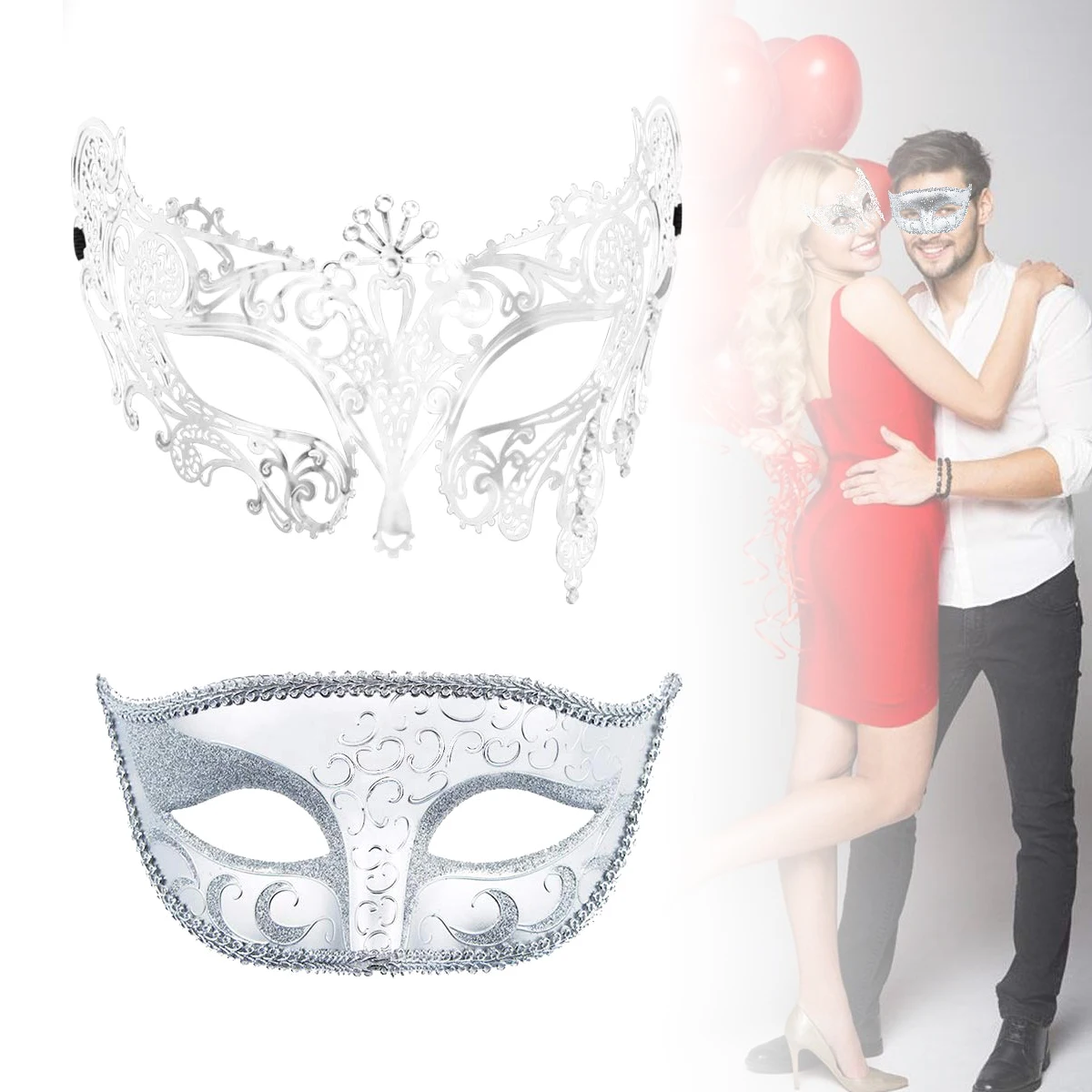 В комплект входят две маскарадные маски, одна из них изготовлена из пластика, другая-металлическая.
