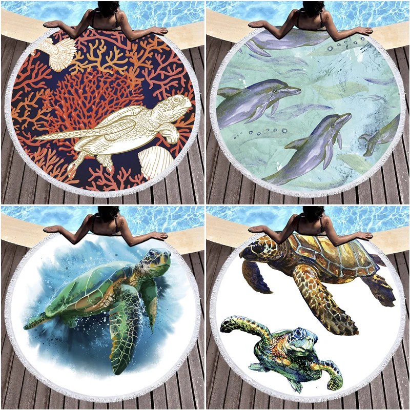 Пляжное полотенце из микрофибры с кисточками в форме черепашек, коврик из микрофибры для дома, декоративное большое круглое пляжное полотенце
