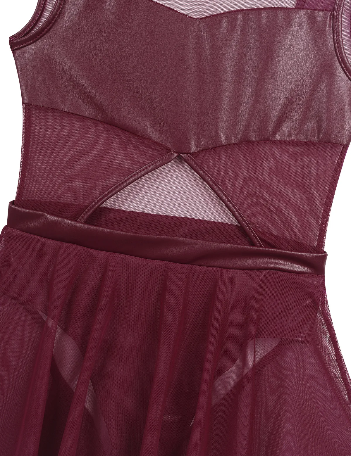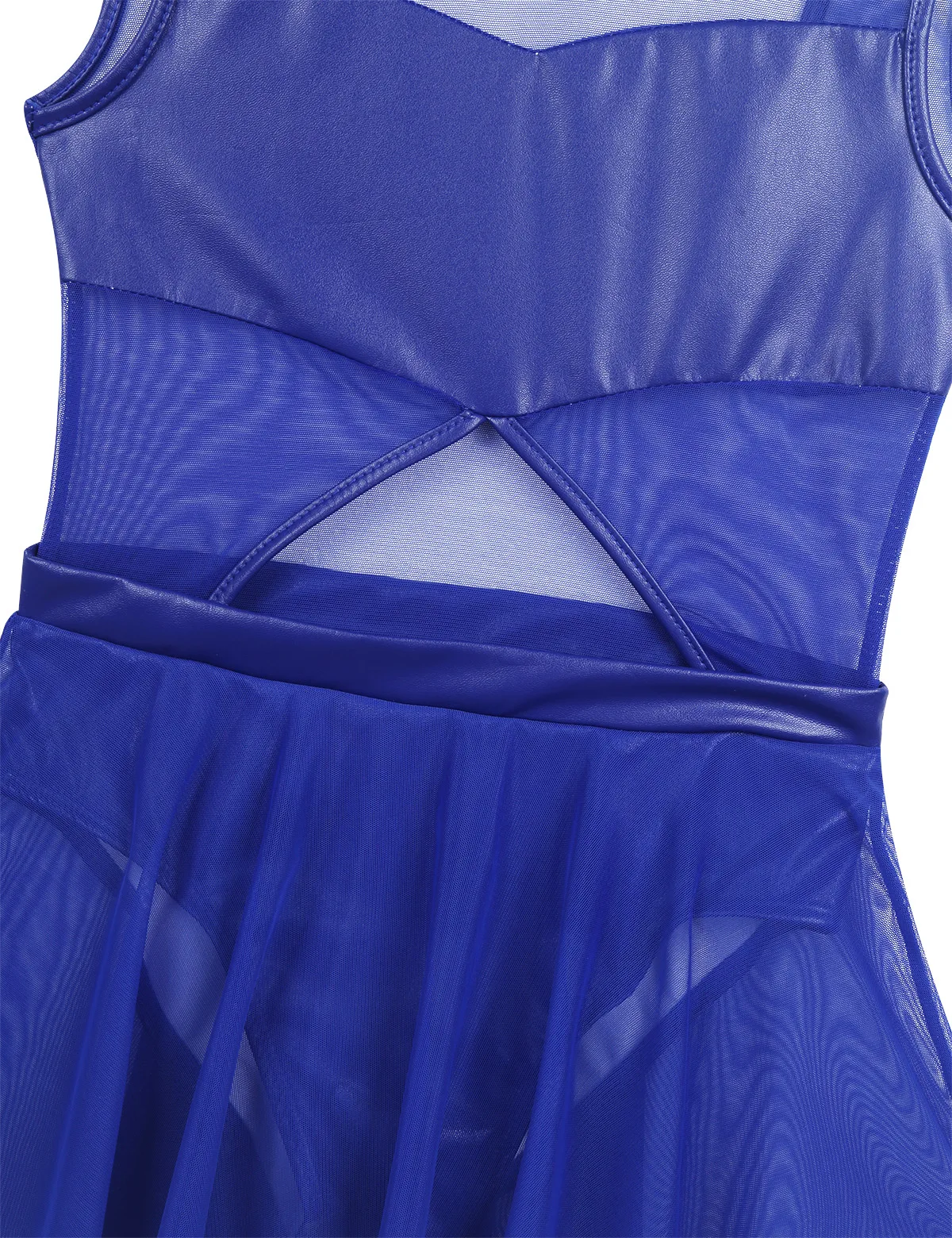 Без рукавов, круглый иллюзионный вырез, вырез сзади. Искусственная кожа соединяется на груди, вырезы на животе. См. Сетчатую заднюю часть.