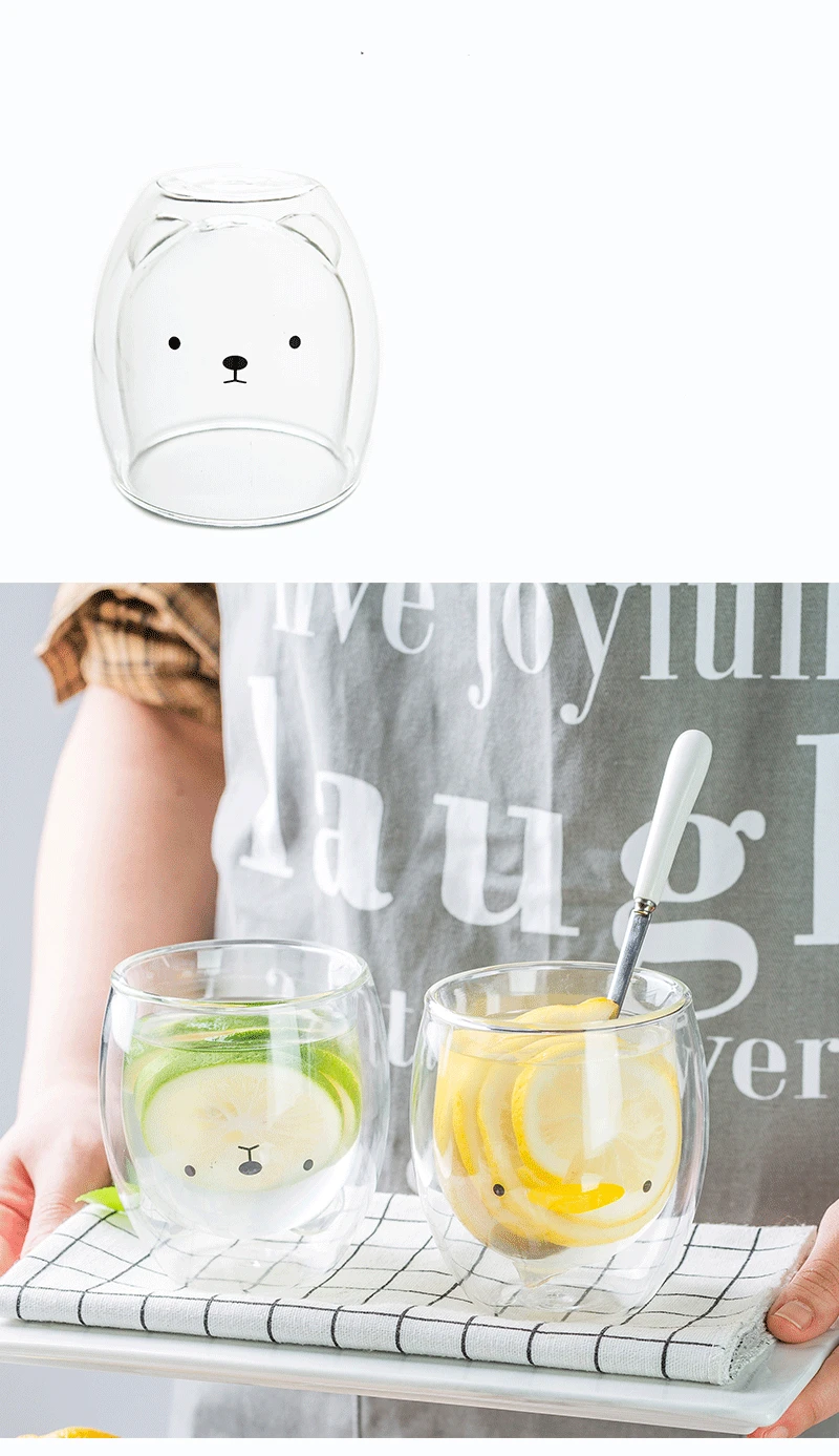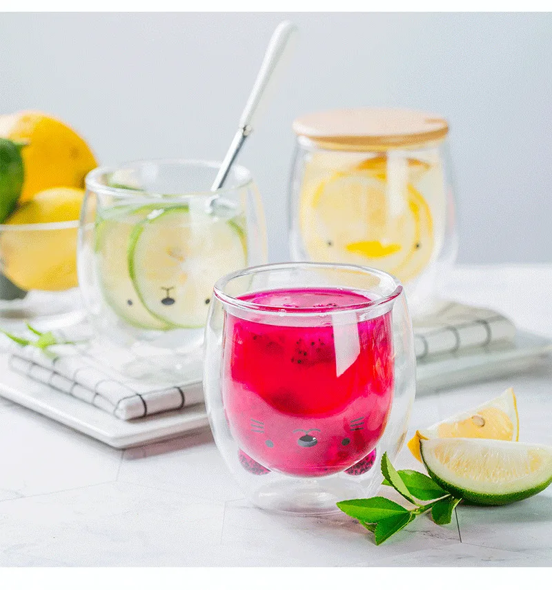Много животных креативные Мультяшные узоры Жаростойкие двухслойные прозрачные стеклянные чашки для завтрака чашки для молока кофе