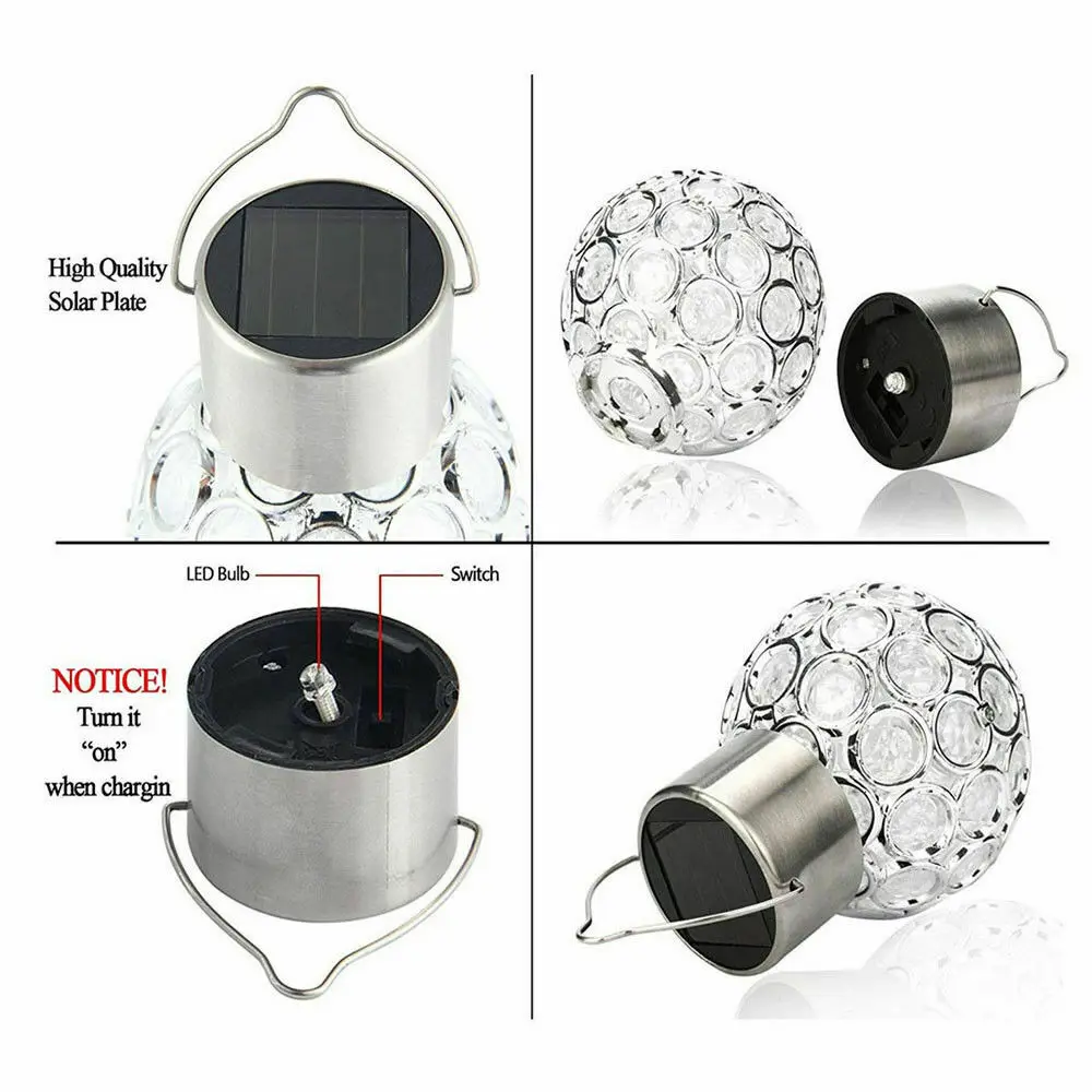 Новый 1 светодиодный хрустальный шар Солнечная лампа мощность светодиодные подвесные светильники солнечные гирлянды для сада Рождественский Декор для улицы