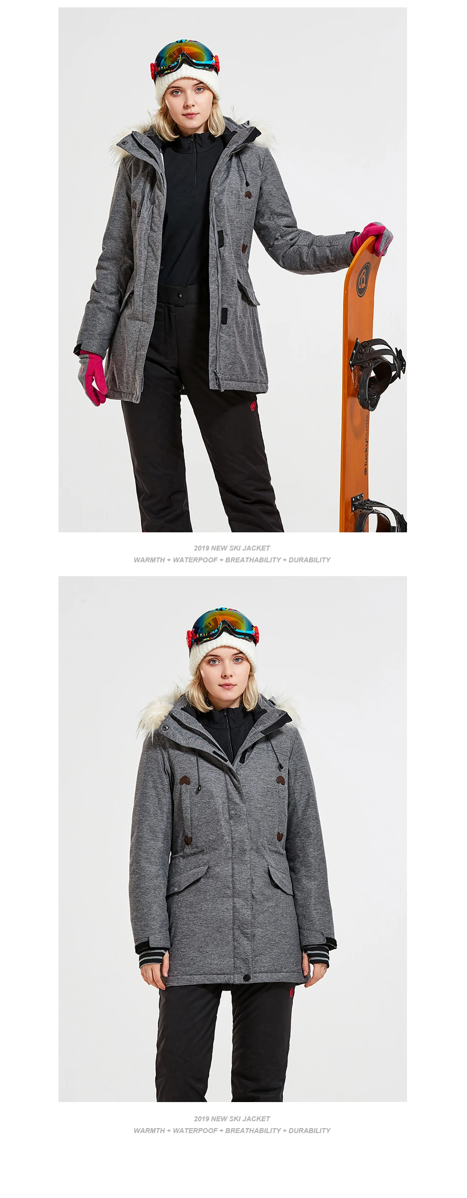 Куртка лыжная Женская ветрозащитная водонепроницаемая Флисовая теплая зимняя