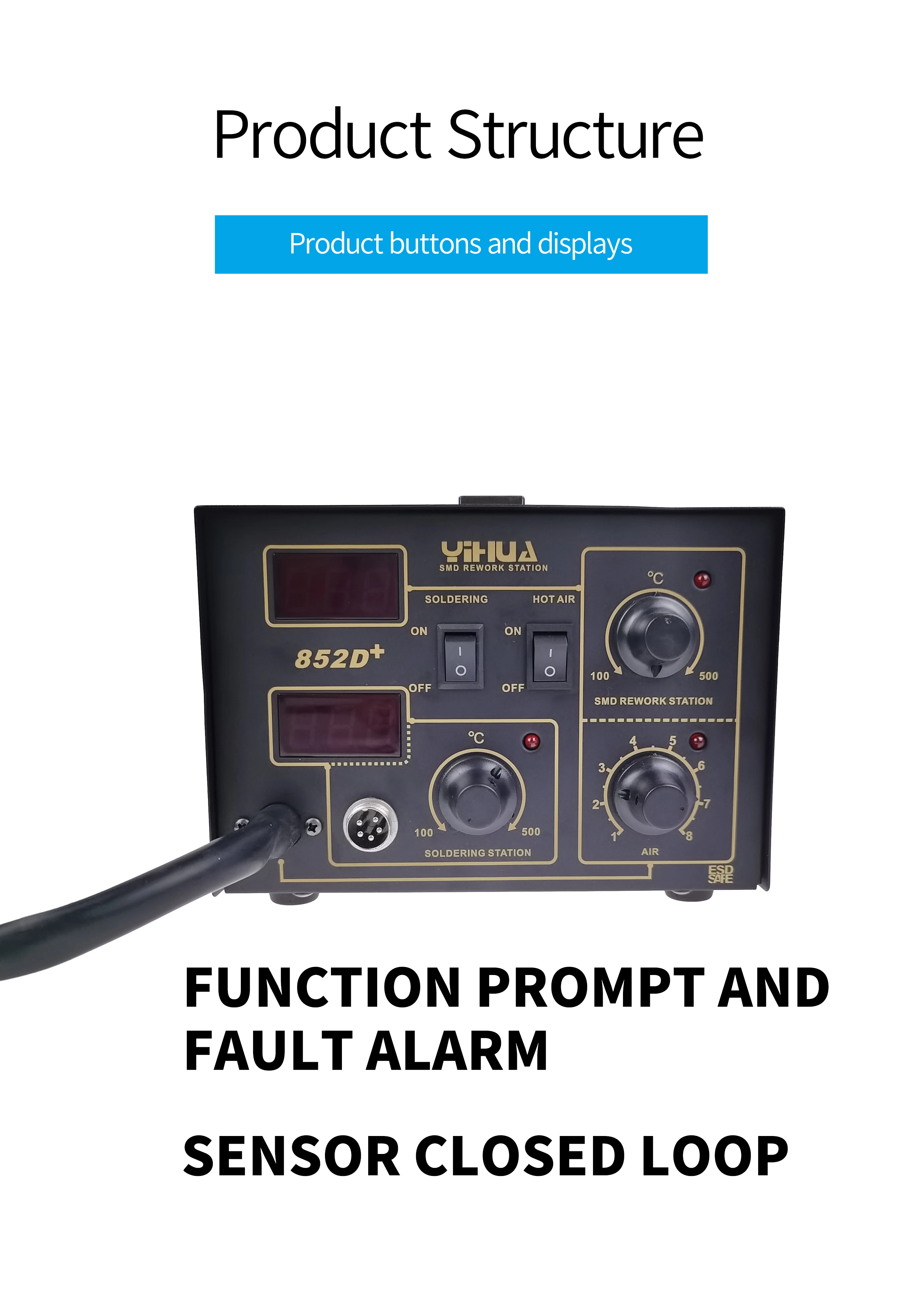 YIHUA 852D + Бесщеточный Вентилятор горячего воздуха с железной паяльной станцией, воздушная паяльная машина, 2в1 станция горячего воздуха, паяльная станция, ремонт