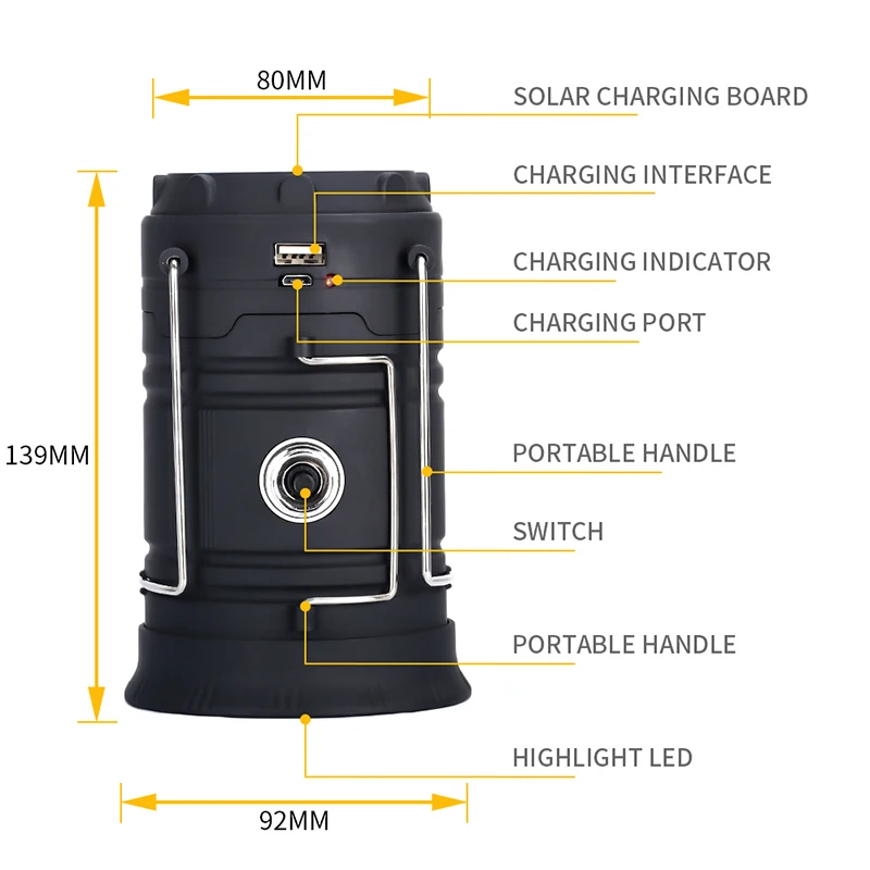 Светильник для кемпинга весит и мал, когда его складывают; Вы можете легко хранить его в своей каюте, рюкзаке или наборе для выживания, идеально подходит для активного отдыха или использования как аварийный светильник.