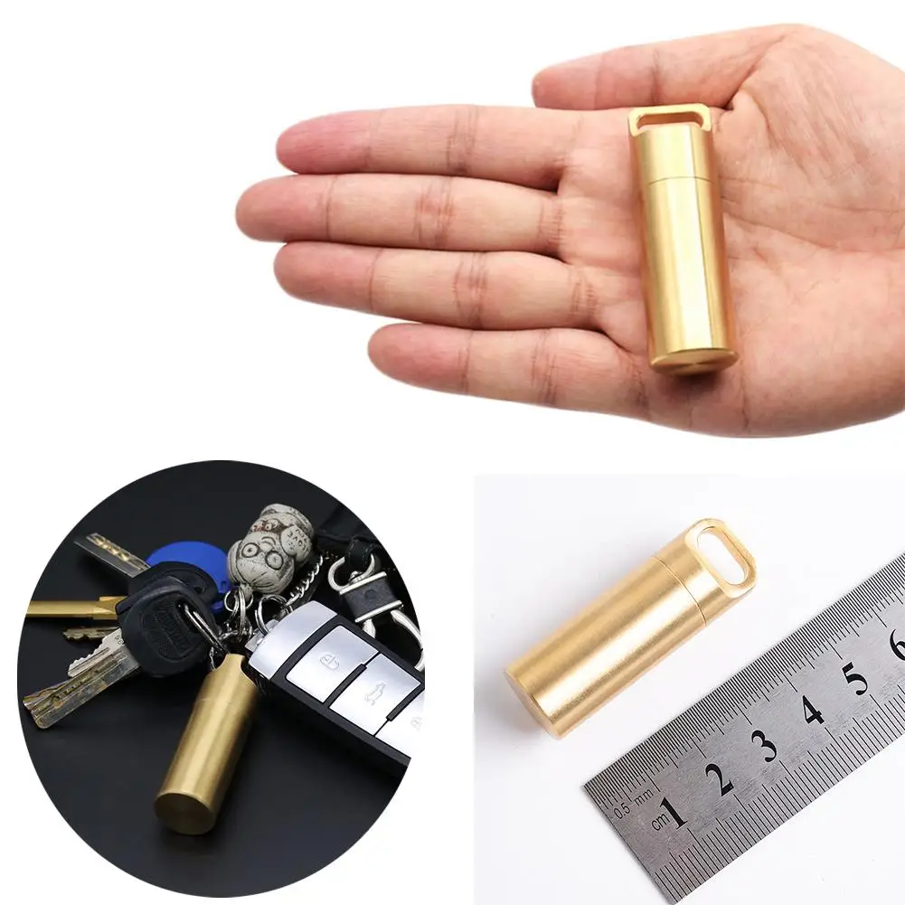 Portable Pill Case Brass Storage Box EDC Sealed Waterproof Metal Capsule Container