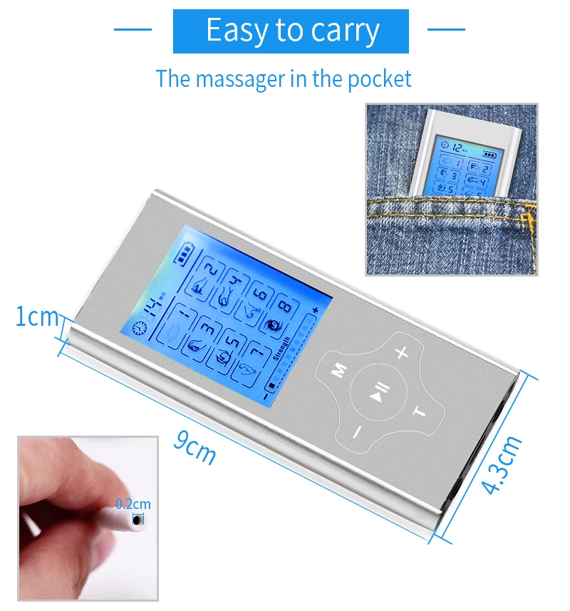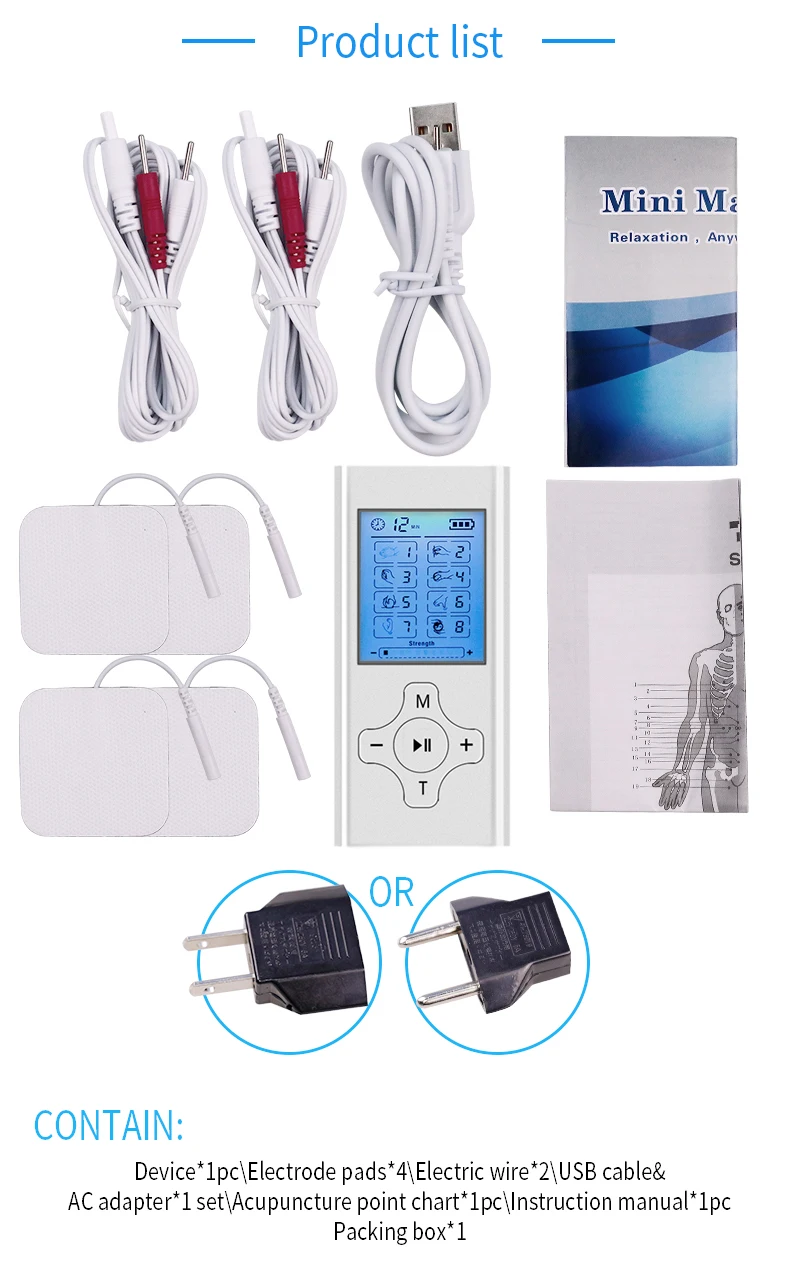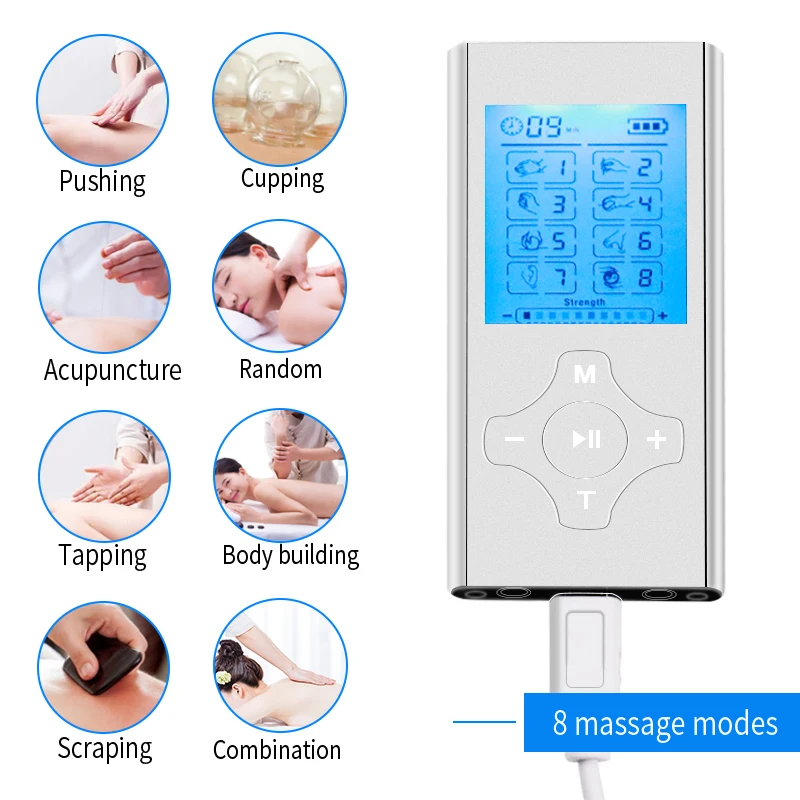 Характеристики: 1,2 выход с 8 режимами 2,20 интенсивности уровня 3,20 минут таймер по умолчанию, может регулироваться от 10-60 минут 4. Перезаряжаемая литиевая батарея 5. Индикатор заряда батареи знать, когда нужно зарядить аккумулятор 6. Адаптер переменного тока 110-240 в, USB зарядное устройство 5 В режимы: Есть шесть режимов на выбор, есть: 1. Толкания 2. Акупунктуры 3. Нарезание резьбы 4. Выскабливание 5. Баночный массаж 6. Случайный 7. Бодибилдинга 8. Инструкции по эксплуатации комбинации: pnirooneslduonr 1. Подключите прокладки к проводу, защелкивая их, а затем снимите защитную пленку. Примечание: Добавление нескольких капель воды на подушечки увеличит их долговечность. 2. Поместите подушечки там, где необходимы массажные ощущения. И подключите к одному из портов устройства. Для дополнительного облегчения Используйте второй порт и повторите процедуру, чтобы надеть еще две прокладки. Убедитесь, что обе подкладки на коже и не перекрываются. Убедитесь, что ваша кожа не содержит грязи, масла или лосьона 3. Включите устройство, сдвинув переключатель вкл/выкл в верхней части устройства. Устройство будет активировано. 4. Нажмите кнопку mode, чтобы попробовать другой режим. Затем нажмите кнопку «Центр», чтобы выбрать волны в пределах этого выбора, помните, что сила будет по умолчанию до самой низкой настройки по каждому выбору режима. Примечание: Центральная кнопка также может использоваться в качестве ключа блокировки. Нажмите и удерживайте его в течение 3 секунд, чтобы заблокировать экран, 3 секунды снова, чтобы разблокировать экран. Характеристики: 1,2 выход с 8 режимами 2,20 интенсивности уровня 3,20 минут таймер по умолчанию, может регулироваться от 10-60 минут 4. Перезаряжаемая литиевая батарея 5. Индикатор заряда батареи знать, когда нужно зарядить аккумулятор 6. Адаптер переменного тока 110-240 в, USB зарядное устройство 5 В режимы: Есть шесть режимов на выбор, есть: 1. Толкания 2. Акупунктуры 3. Нарезание резьбы 4. Выскабливание 5. Баночный массаж 6. Случайный 7. Бодибилдинга 8. Инструкции по эксплуатации комбинации: pnirooneslduonr 1. Подключите прокладки к проводу, защелкивая их, а затем снимите защитную пленку. Примечание: Добавление нескольких капель воды на подушечки увеличит их долговечность. 2. Поместите подушечки там, где необходимы массажные ощущения. И подключите к одному из портов устройства. Для дополнительного облегчения Используйте второй порт и повторите процедуру, чтобы надеть еще две прокладки. Убедитесь, что обе подкладки на коже и не перекрываются. Убедитесь, что ваша кожа не содержит грязи, масла или лосьона 3. Включите устройство, сдвинув переключатель вкл/выкл в верхней части устройства. Устройство будет активировано. 4. Нажмите кнопку mode, чтобы попробовать другой режим. Затем нажмите кнопку «Центр», чтобы выбрать волны в пределах этого выбора, помните, что сила будет по умолчанию до самой низкой настройки по каждому выбору режима. Примечание: Центральная кнопка также может использоваться в качестве ключа блокировки. Нажмите и удерживайте его в течение 3 секунд, чтобы заблокировать экран, 3 секунды снова, чтобы разблокировать экран. Характеристики: 1,2 выход с 8 режимами 2,20 интенсивности уровня 3,20 минут таймер по умолчанию, может регулироваться от 10-60 минут 4. Перезаряжаемая литиевая батарея 5. Индикатор заряда батареи знать, когда нужно зарядить аккумулятор 6. Ад