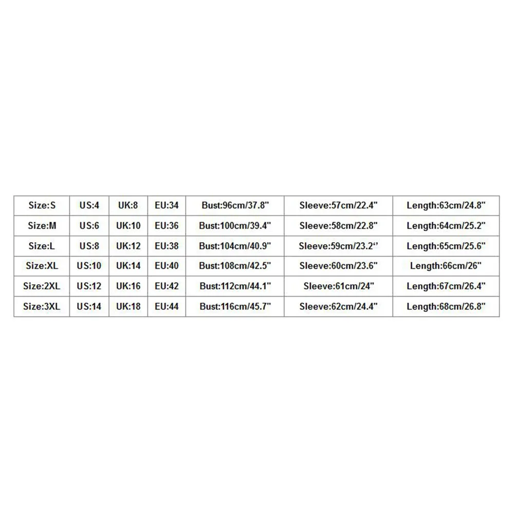 | Размер: L | США: 8 | Великобритания: 12 | ЕС: 38 | Обхват груди: 100 см/37,4 дюйма | Рукав: 59 см/23,2 дюйма | Длина: 64 см/25,2'' |