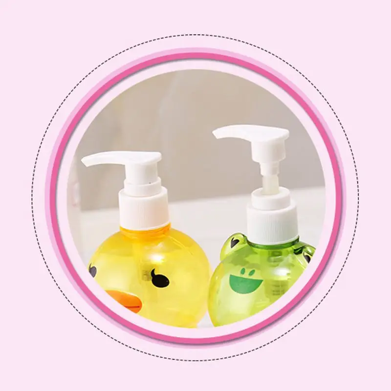 Большое отверстие для легкого пополнения. Яркий цвет и милый дизайн в форме лягушки/утки, прозрачная бутылка.