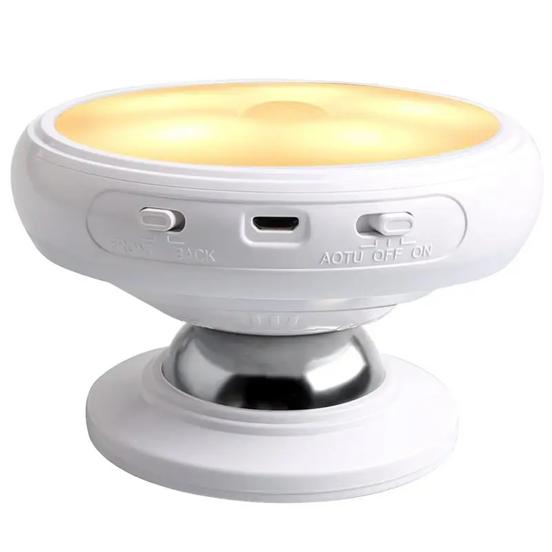 Круглый стильный дизайн: 360 градусов индукционный Ночной светильник, вы можете регулировать светильник угол произвольно, фиксированной в любом месте, которое можно регулировать 360 градусов изменять направление освещения в любом направлении.