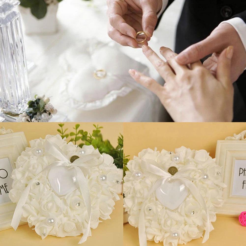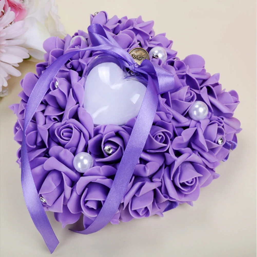 -Подушка для свадебного кольца в западном стиле, с высококачественной экологически чистой пеной, не выцветает, не пахнет, старшая атласная ручная работа, грязь, прочная, многоразовая, отправить свадебное кольцо после свадьбы также является хорошим ремеслом, орнаментом. Используйте его в качестве транспортного средства для передачи свадебных колец, свадьбы добавляют цвет, чтобы дать вам различные ощущения.