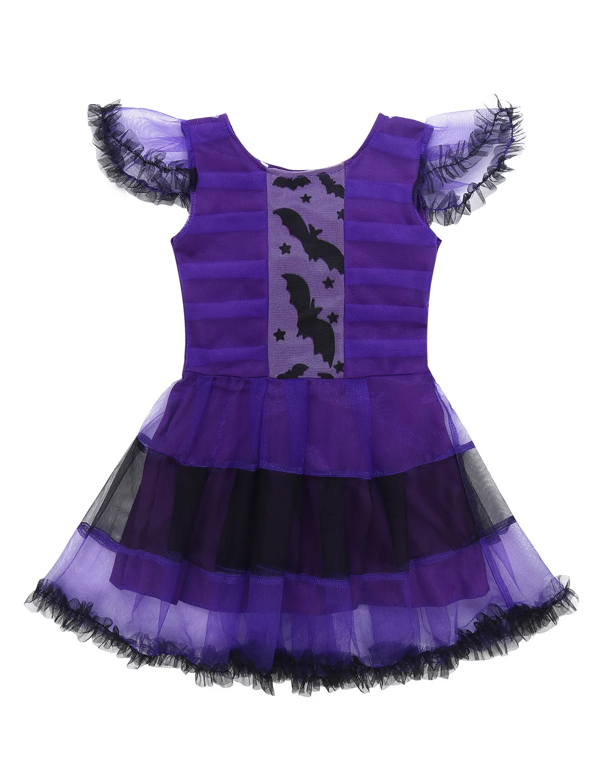 2 слоя юбки, топ из сетки фиолетового и черного цветов, 1 подкладка. Повязка на голову с ушами, дизайн «летучая мышь» и крыльями с блестящими вставками прекрасно подойдет под платье для костюмированной вечеринки