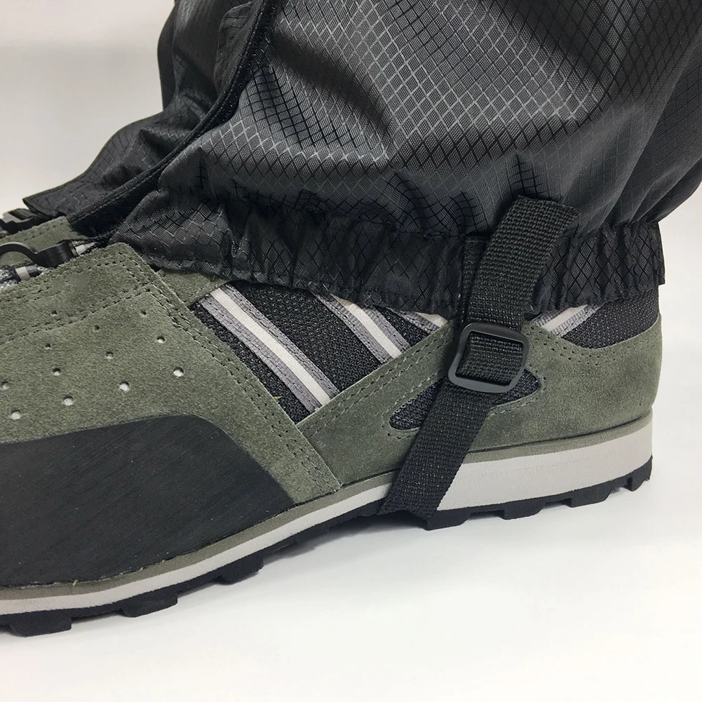 -Защитный чехол на ноги разработан подошва ремень с пряжкой, гетры для защиты от снега снизу с регулируемым ремень с пряжкой, который можно регулировать на соответствующую длину, удобнее для скалолазания.