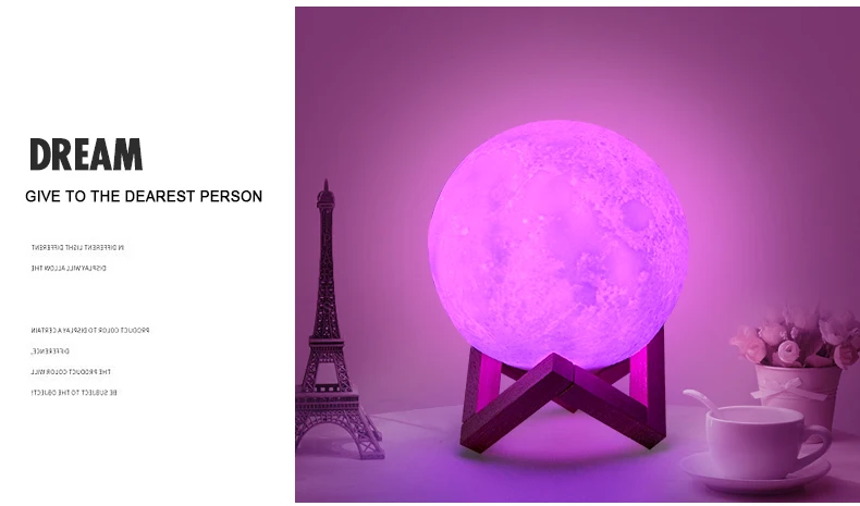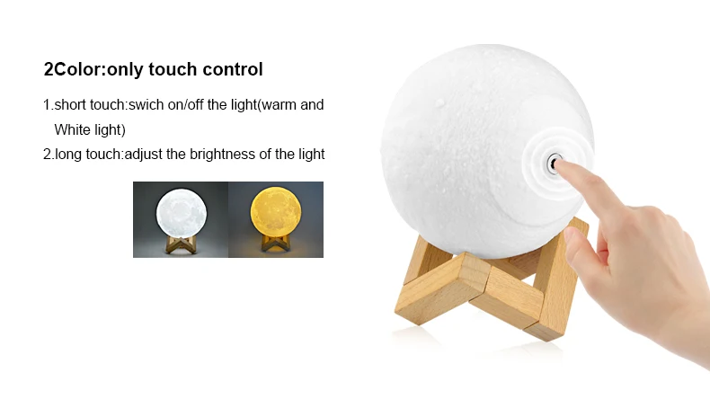Луна была божественным и очаровательным символом в истории человека, и она приносит вам тайну, восторг, вера и романтику. Украсьте свой собственный мир этим луным светом-отлитым нежным свечением над вашим столом или прикроватным столом. Прекрасный подарок: выразите свою любовь в этом теплый подарок. Ваши дети или возлюбленные не могут сопротивляться этому очаровательный подарок. И это также отличное украшение для вашего дома. Особенности: 1.3D технология печати: печать слоя по слою, восстановление реального внешнего вида Луны 2. Порт зарядки и переключатель интеграции: простой, красивый и практичный, простой в эксплуатации 3. Теплый и нежный светодиодный свет: Коснитесь металлического кольца, чтобы переключить цвет и выключить свет 4. Вы можете держать его на руке. Легко положить в любое место, которое вам нравится с деревянным держателем 5. Безопасный и экологически чистый: PLA материал, извлекаемый из кукурузных стеблей, жесткий и гладкий, нетоксичный, без запаха, экологически чистый 6. Долгое время использования: 400 мАч встроенный аккумулятор, после полной зарядки, лампа может использоваться 8-25 часов, полная зарядка занимает около 6-8 ч Технические характеристики: Тип: лунный свет Материал: ПВХ + АБС Цвета света: белый + теплый белый/16 цветов с пультом управления Емкость аккумулятора: 1x400 mAh li-po аккумулятор (встроенный) Время зарядки: 2 часа Время работы: 8-25 часов (зависит от яркости) Источник питания: USB DC 5 V Диаметр: 8 см/10 см/13 см/15 см/18 см/20 см