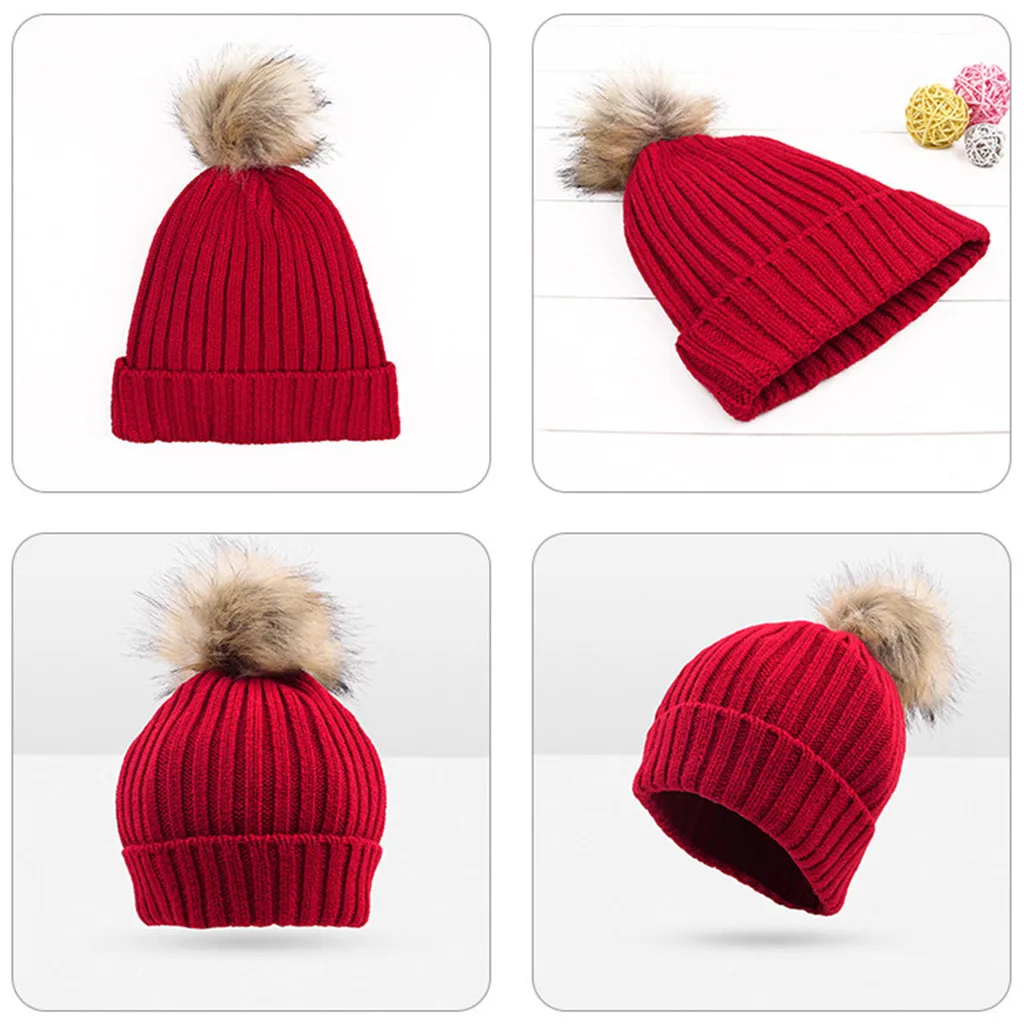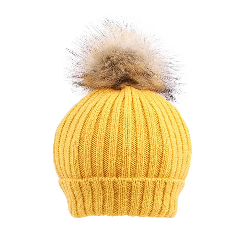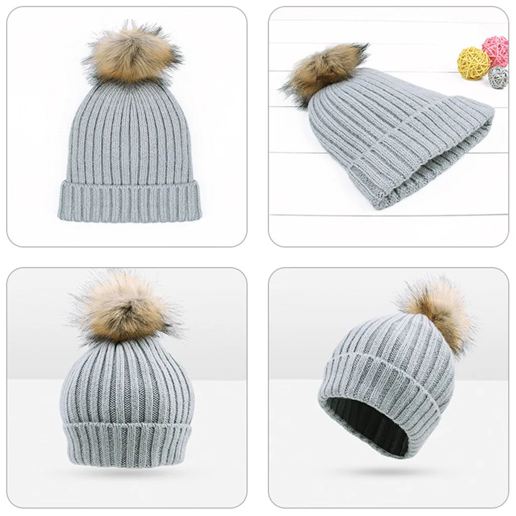 Вязаная вязаная шерстяная шапка с помпоном для новорожденных мальчиков и девочек Теплая Зимняя кепка