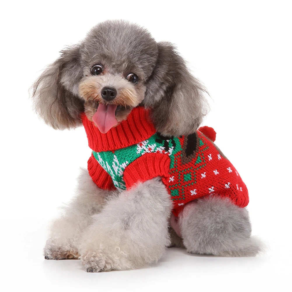 Свитера с изображением собаки для маленьких собак собаки, домашние питомцы, щенки одежда с принтом в виде собак зимние Лось с изображением новогодней елки и костюм Джемпер теплый свитер для собаки, рождественское пальто для собак